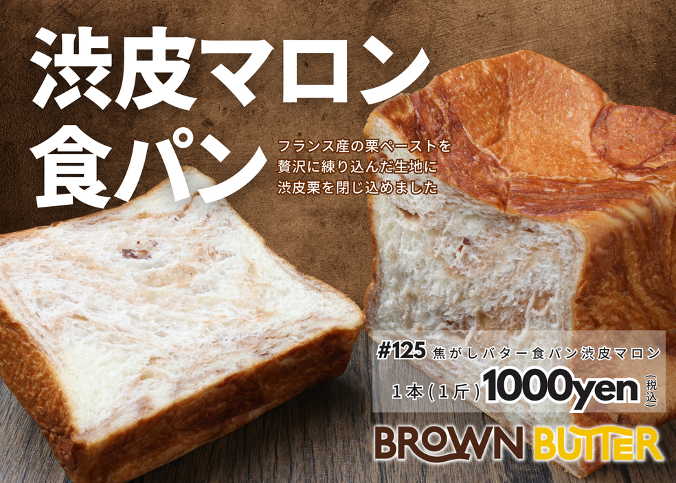 「BROWN BUTTER」が贈る秋の新作食パン、渋皮マロンとほうじ茶が登場!