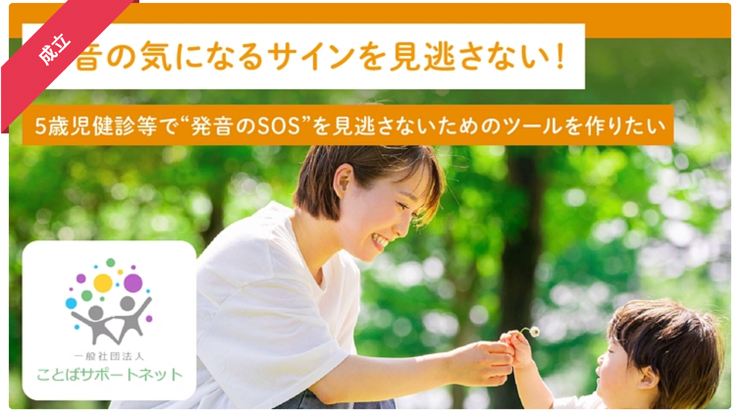 ことばサポートネットは、5歳児健診等で活用できる発音チェックシート作成を目的としたクラウドファンディングを実施し、目標金額12万円に対し、達成率230%の支援を受け成立したことをお知らせします。