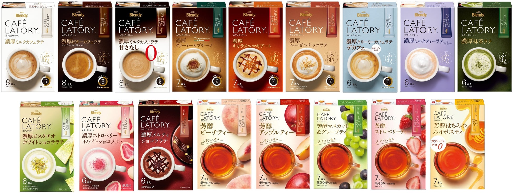 《「ブレンディ®カフェラトリー®」スティック》は、“カフェで過ごすようなご褒美のひととき”をコンセプトにさまざまなラインナップを拡充しており、豊かな泡立ちと本格的なカフェの味わいを手軽に楽しめる点が評価され、お客様に支持され続けています※。