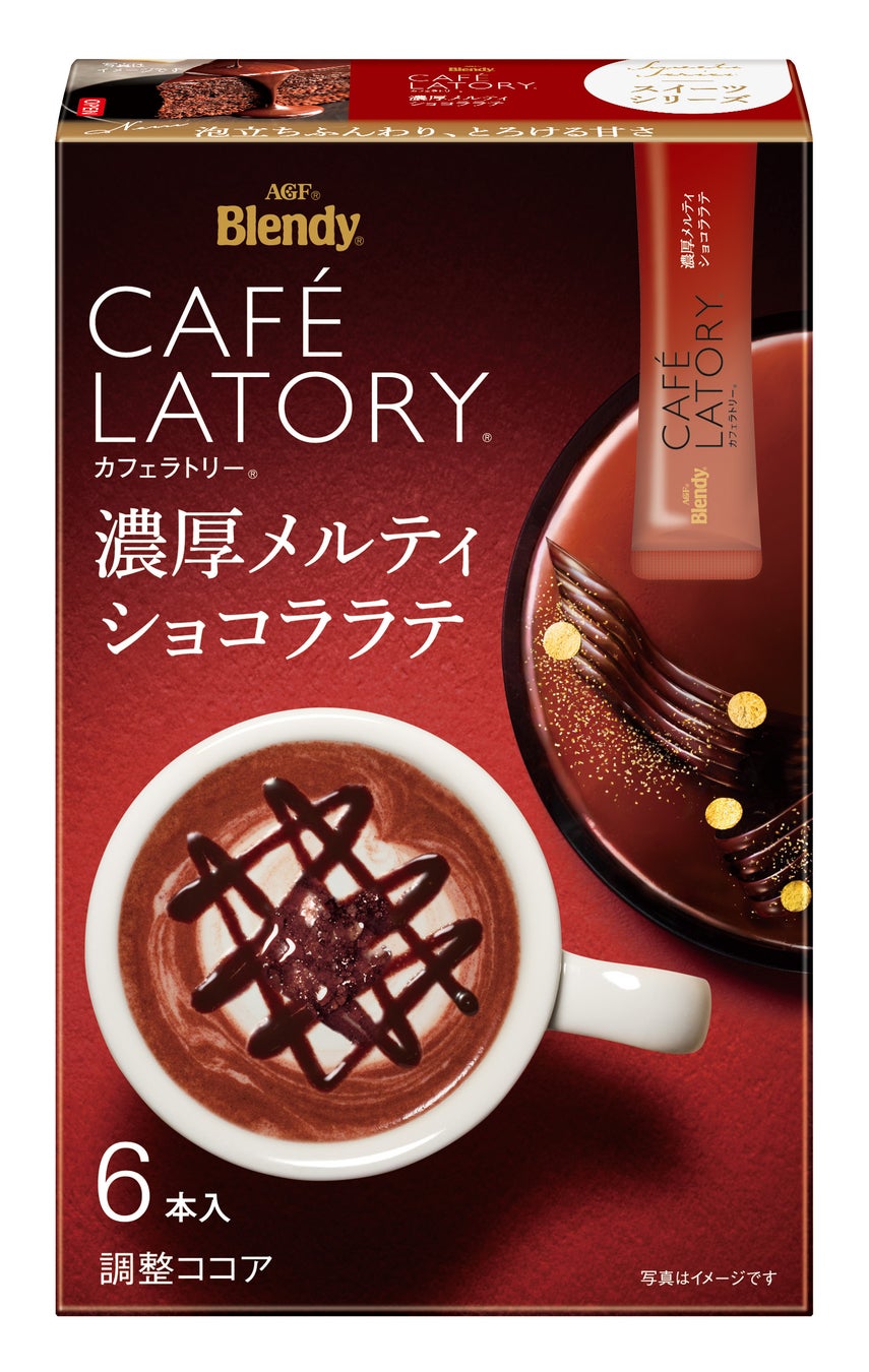 ③《「ブレンディ®カフェラトリー®」スティック 濃厚メルティショコララテ》は、上質なココアパウダーと濃厚でコク深いミルクを合わせたとろける甘さのショコラ・ラテ。お湯をそそぐだけで、なめらかなくちどけのショコラスイーツのような味わい深い1杯が楽しめます。
