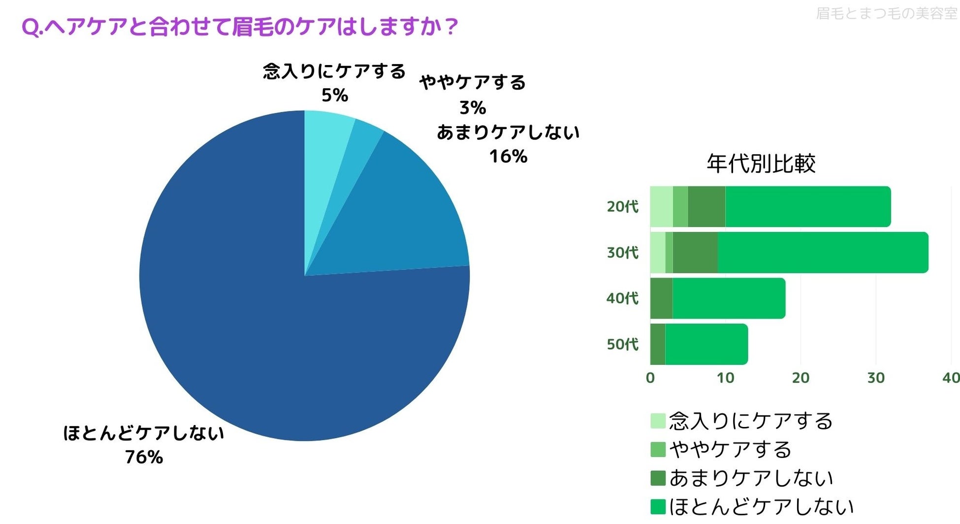 【5】ヘアケアと眉毛ケアはほぼ関連性なし!ほとんどの人が眉毛ケアに興味がないという結果に