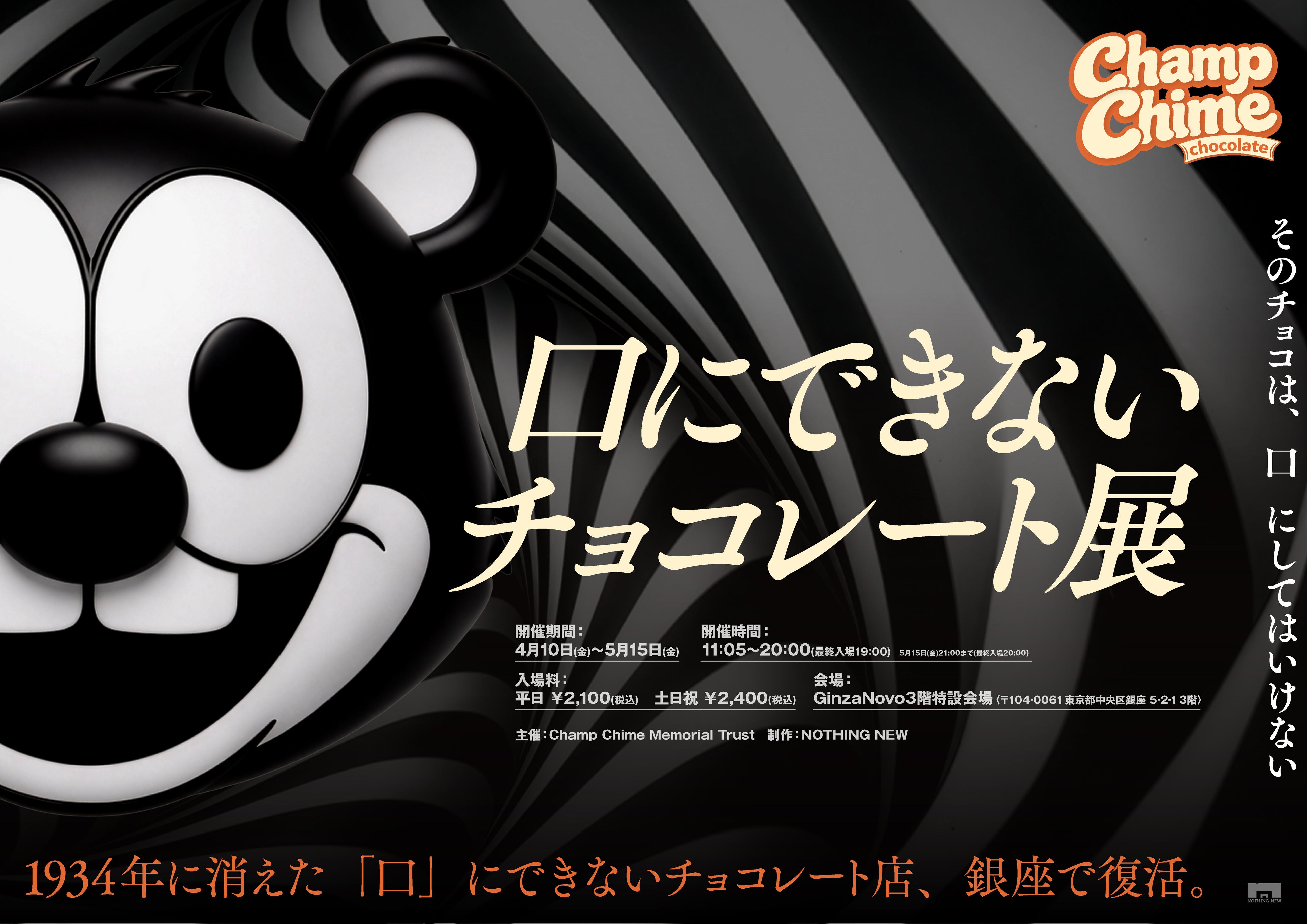 映画レーベル NOTHING NEWは2026年4月10日(金)からGinzaNovo 3F特設会場にて企画展『Champ Chime Chocolate(チャンプチャイムチョコレート)』を開催いたします。