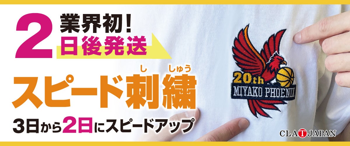 【業界最速*!】オリジナルグッズ製作会社のCLAT-JAPANが、刺繍加工の発送スピードを「最短2日後発送」に短縮します。