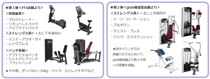 またトレーニングマシンの寄贈は2023年4月に第一弾として当社から8台の寄贈を行った他、当社のこうした活動に賛同した青山商事グループ会社globが、同社運営店舗で使用されていたマシン4台を、2024年1月に第二弾として寄贈を行いました。