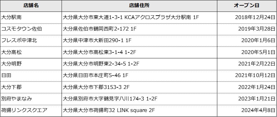 ●大分県内のエニタイムフィットネス店舗 ※オープン日順
