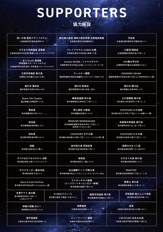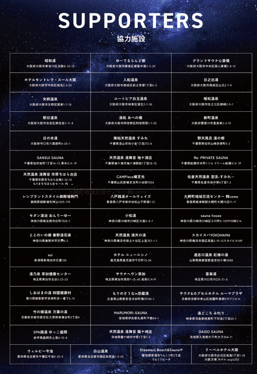 私たちは「お風呂文化を通じて、地域の橋渡しを」を掲げ、事業活動(後述)をしています。歴史・文化が集約する地域の憩いの場である銭湯や温浴施設を通じて、地域の魅力、ひいては日本の魅力を再発見・再発信できればと考えています。今回、サ旅万博のイベントコンセプトである「サウナが日本を訪れる理由になる」に共感・賛同し、弊社の注力領域であるサウナをきっかけに、各地域の魅力発信の一助になれればと思い、本プロジェクトに参画いたしました。
