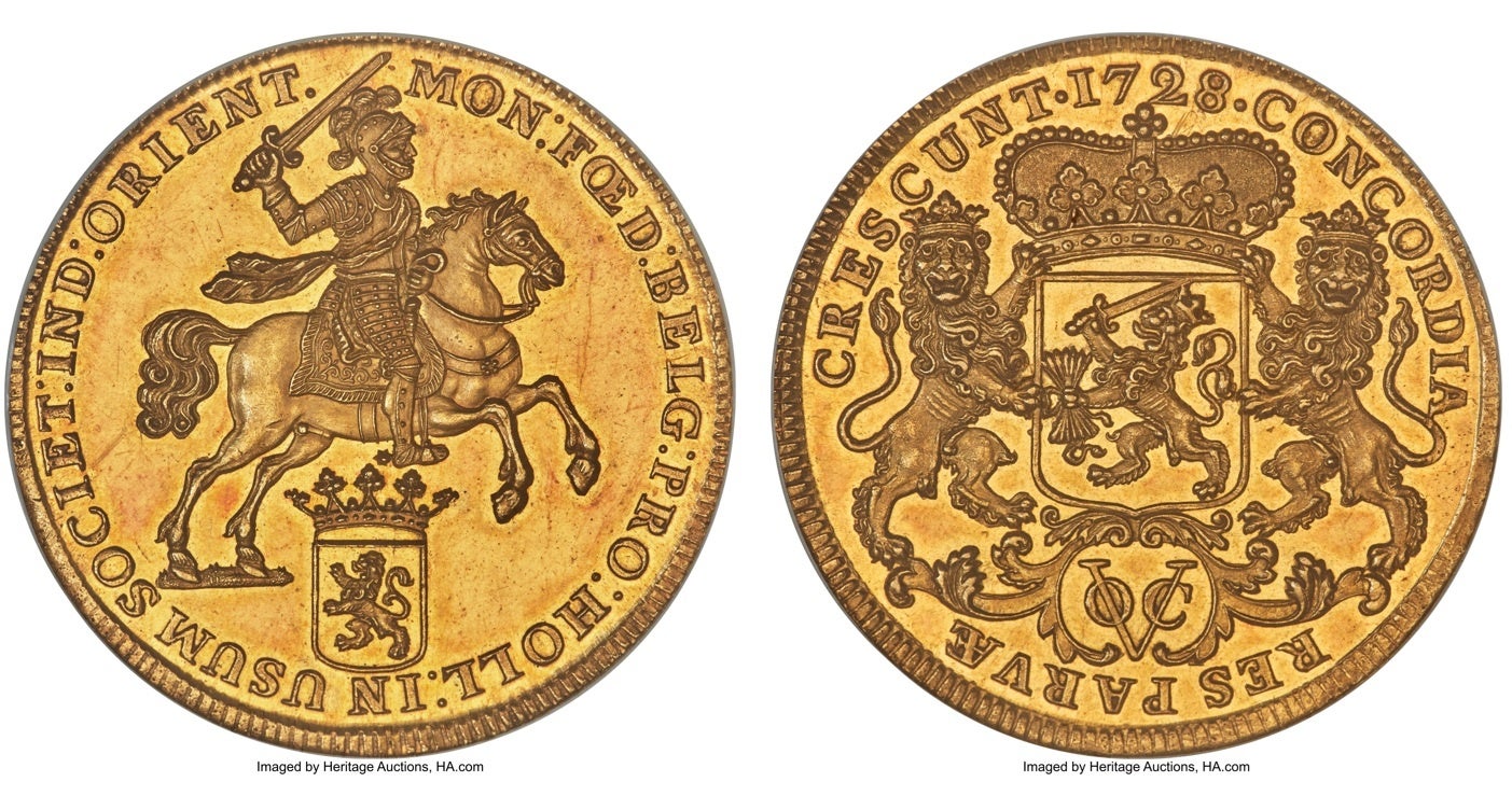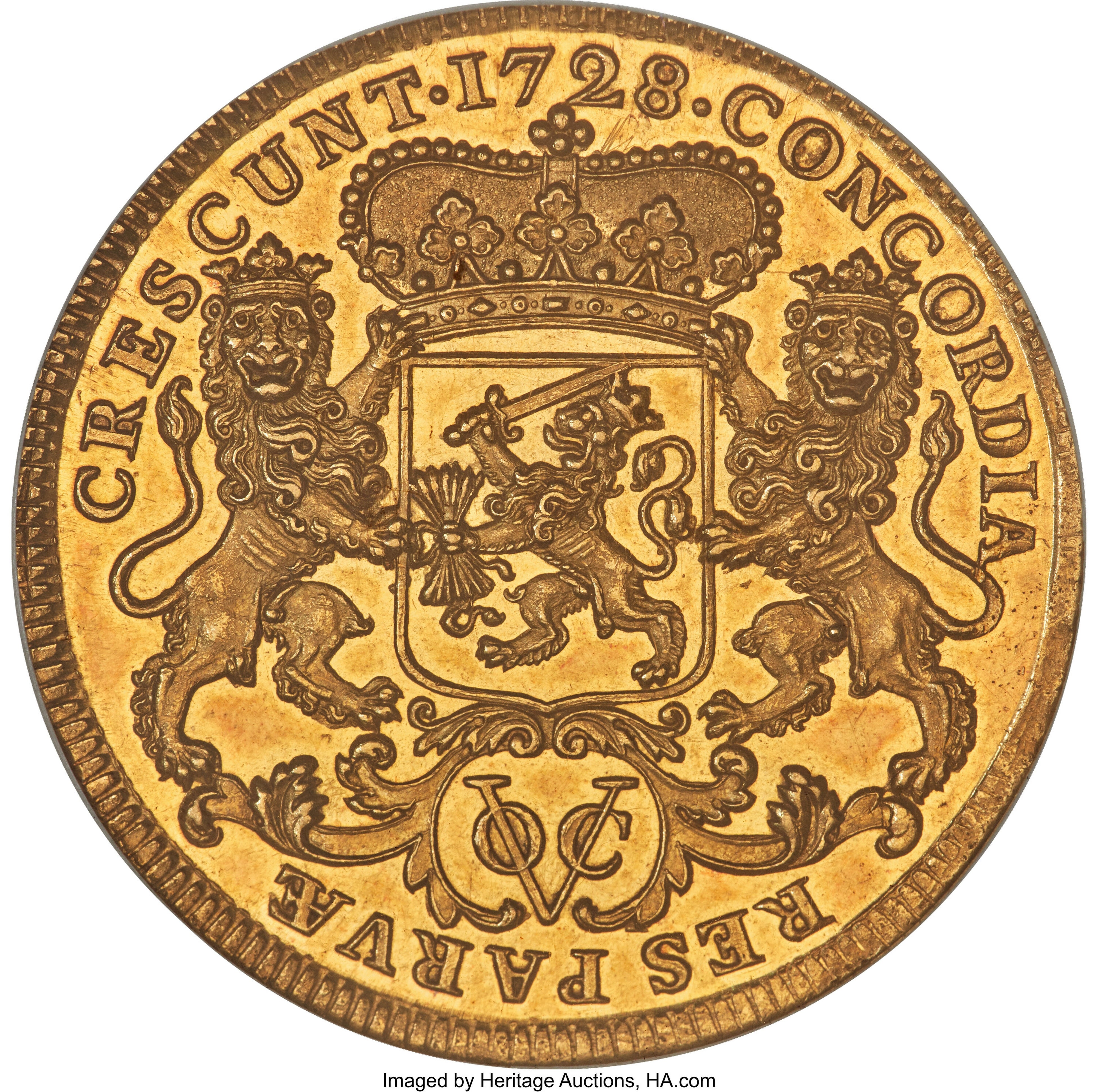 オランダ植民地:1728年 オランダ東インド会社VOC デュカトン金貨 試鋳貨 NGC PR63