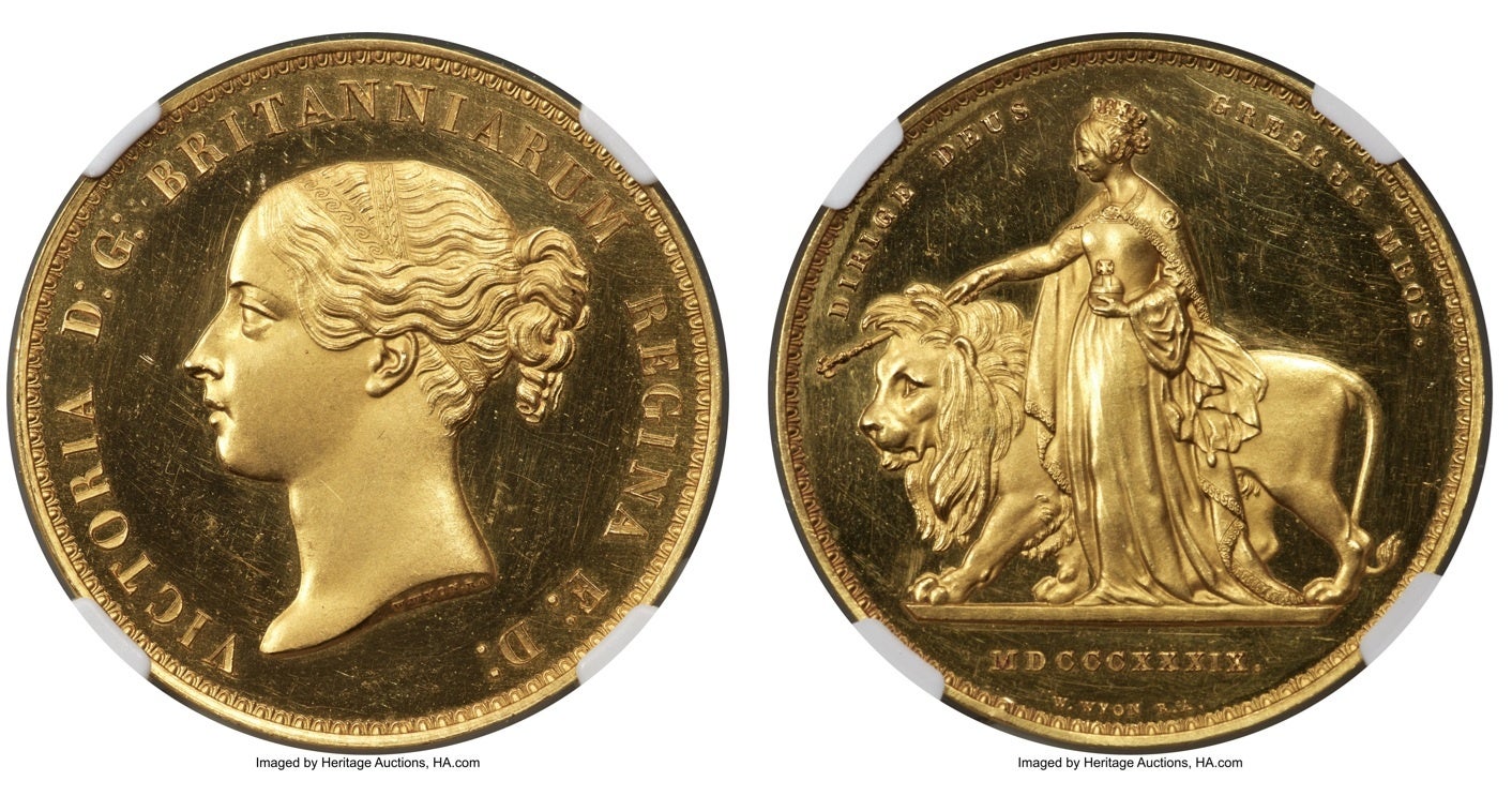 イギリス:1839年 ヴィクトリア女王 「ウナ&ライオン」 5ポンド金貨 NGC PR63UC W&R-279