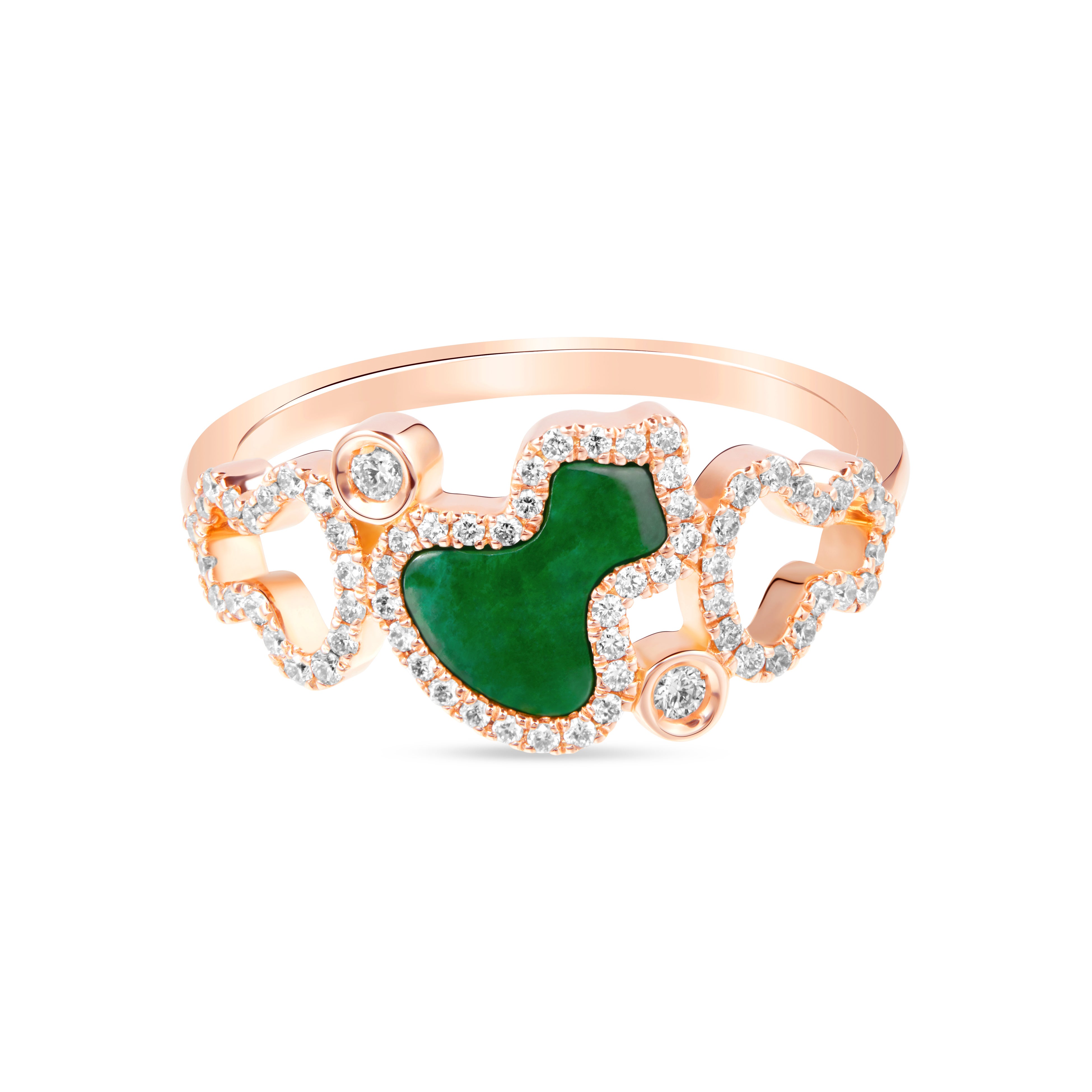 18Kローズゴールドの新作〝 WuluWulu リング 〟は、レッドアゲートのあたたかな色彩とダイヤモンドの輝きを組み合わせ、モダンなスピリットを映し出します。ダイヤモンドをあしらった2つの透かしのWuluモチーフが、彫刻的に仕上げられたレッドアゲートのWuluを包み込み、光と影が織りなす印象的なコントラストを演出。ラウンドのベゼルセッティングダイヤモンドがデザインにさらなるアクセントを添え、WuluWuluコレクションを象徴する連なり合うリズムを美しく際立たせています。さらに本シリーズには、オリエンタルな気品と永続する幸運を体現する翡翠を彫刻したWuluWulu リングに加え、より軽やかでコンテンポラリーな魅力をまとった Petite Red HyCeram® リングも登場します。