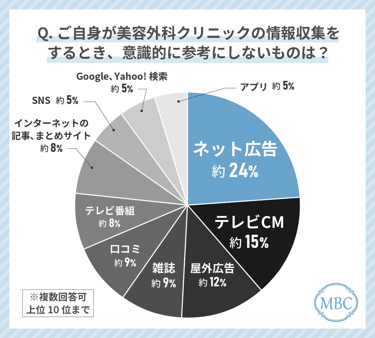 「ご自身が美容外科クリニックの情報収集をするときに最も参考にするものは何ですか(複数選択可)」とアンケート調査した結果、