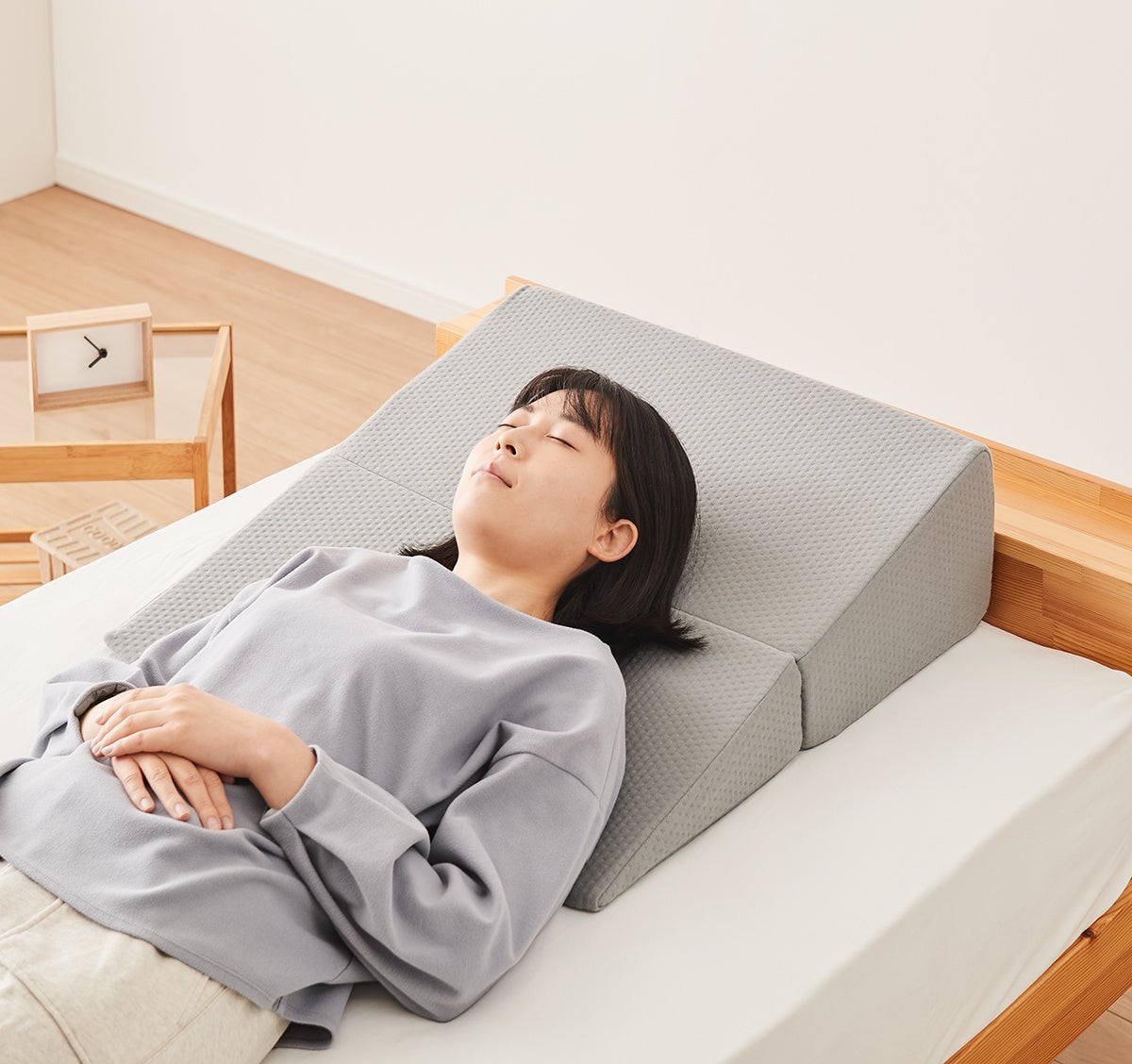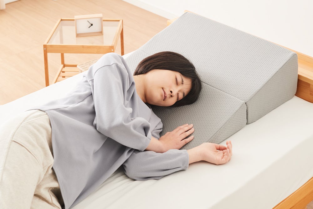 脚枕やうつ伏せ寝にも対応した、活性炭入りで清潔に使える三角クッション