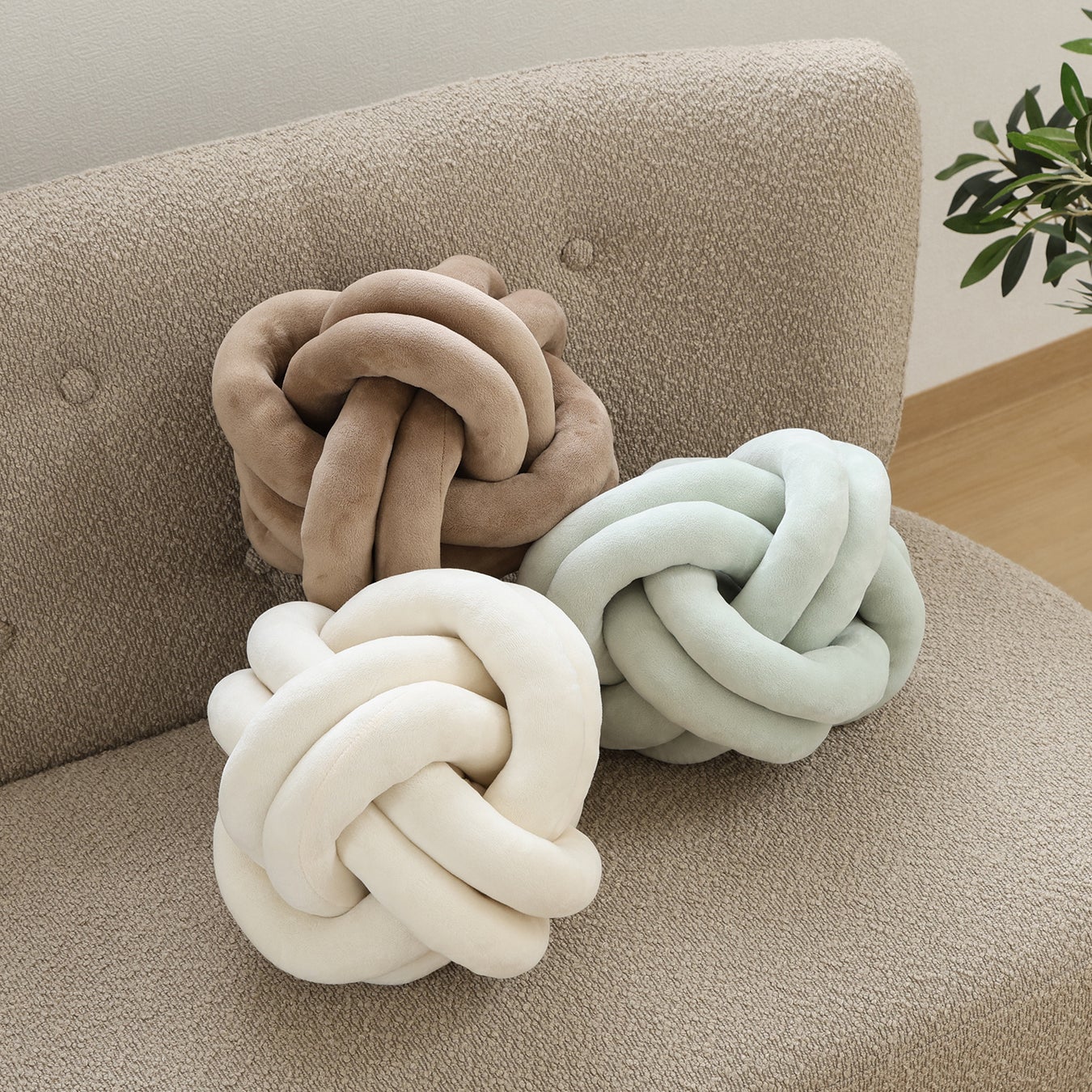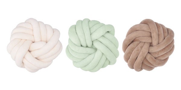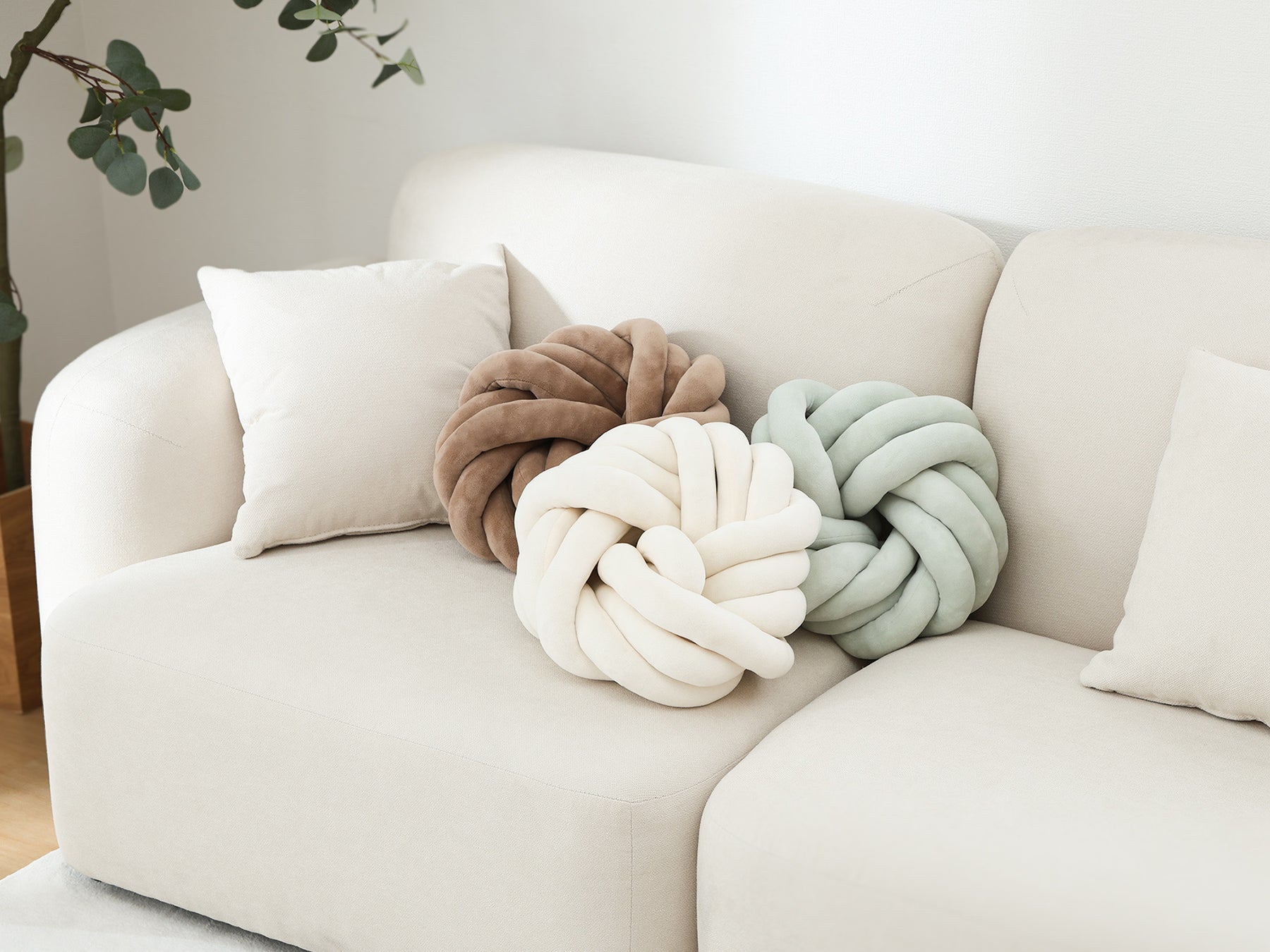 お部屋の雰囲気や季節に合わせて選択できるように、3型×3色の豊富なラインナップでご用意しました。形はボール・ラウンド・スクエアの3型。お部屋に立体感を持たせ、メリハリのある空間をつくります。またカラーはナチュラルで合わせやすいアイボリー・ブラウンとインテリアのアクセントになるグリーンの3色をご用意。淡いカラーリングでクッションのかわいらしさを引き立てます。