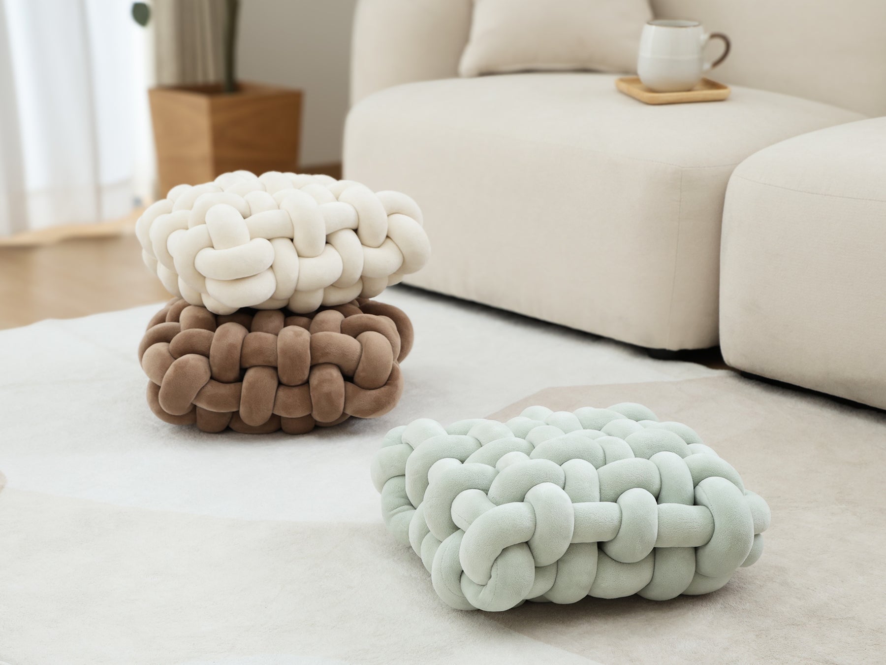 チャンキークッションは太い糸で編んだような見た目とふんわりとした質感が特徴です。その見た目の可愛さからSNSなどで人気を集め、2020年頃新たなインテリアトレンドになりました。ナチュラルテイストの北欧風や韓国風、モダンでホテルライクな空間などと相性がよく、置くだけでやわらかな雰囲気と温かみをプラスしてくれます。