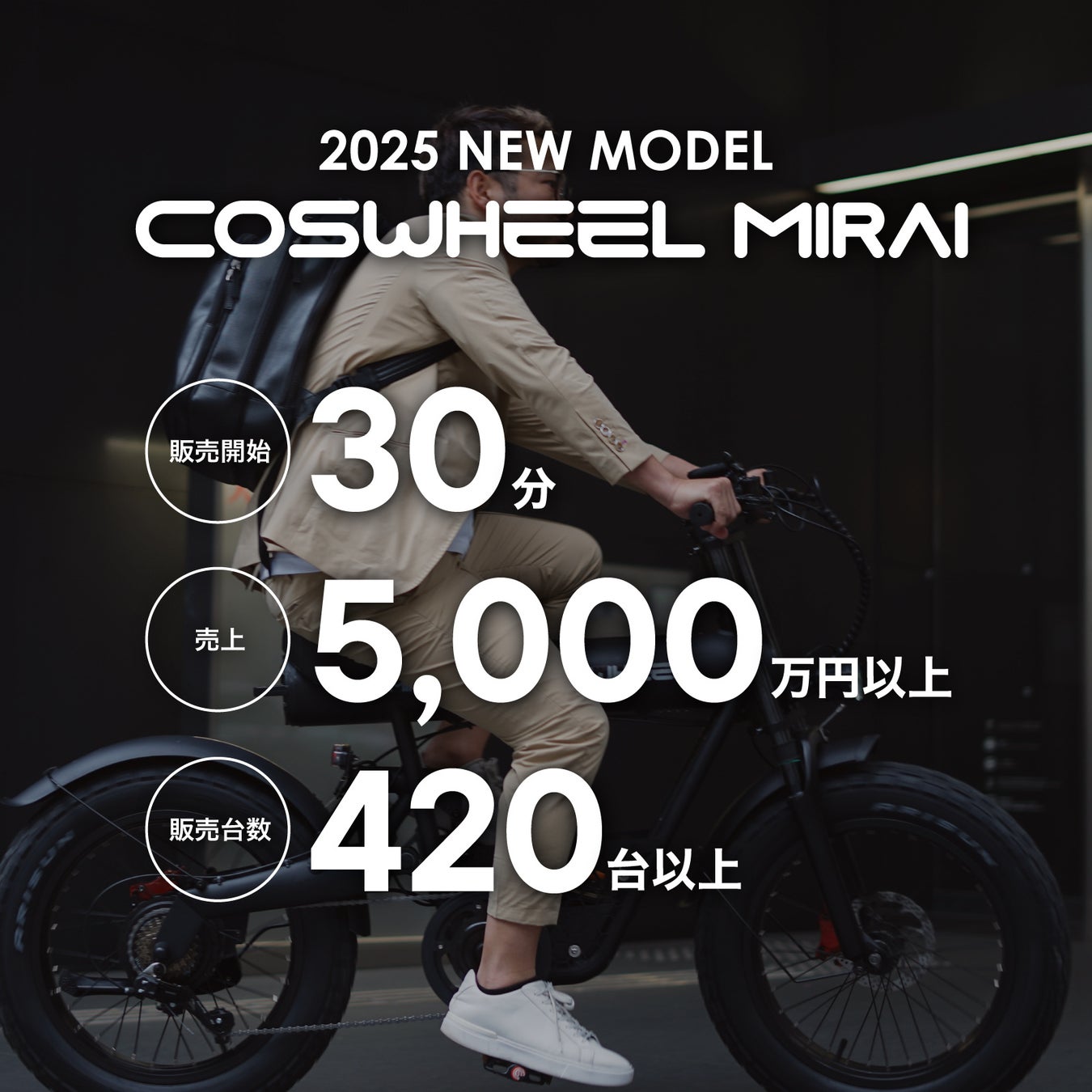 2025年に入り、Acalieは二つのビックプロジェクトを開始しました。第一弾となるCOSWHEEL New MIRAIシリーズは、開始30分で売上5,000万円以上、販売台数420台以上(超早割、早割がすべて完売)を達成。本日現在も販売台数を伸ばしております。
