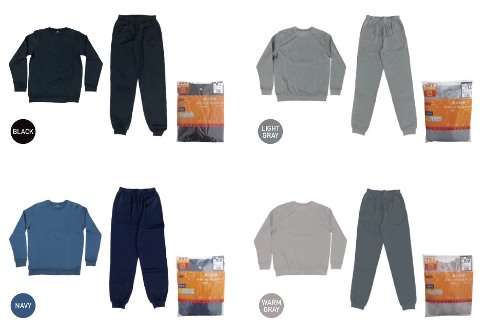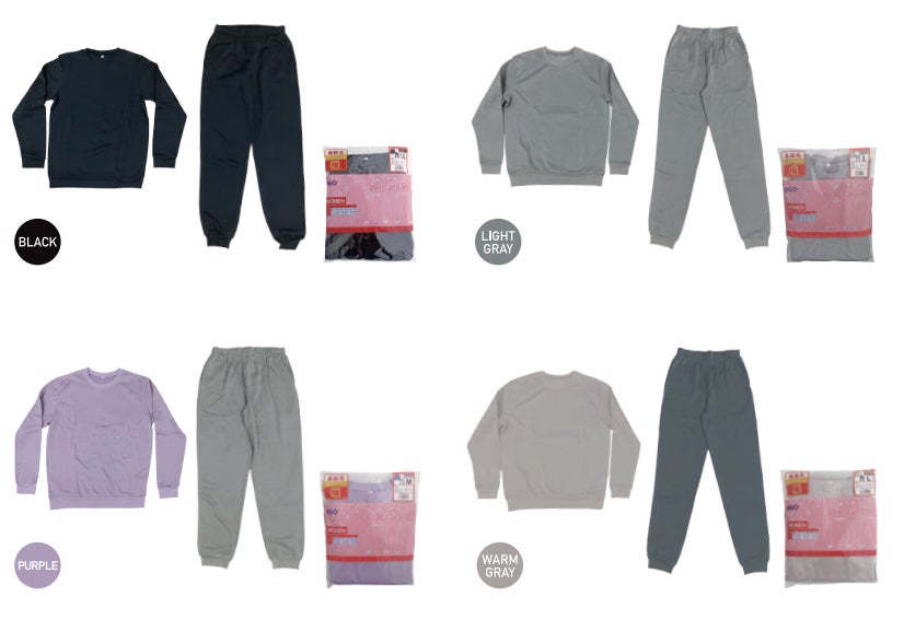 今回発売する新商品は、「あったかスウェットセットアップ」や「あったかスウェットプルパーカーセットアップ」、「あったかスウェットジップパーカーセットアップ」などのセットアップ商品をはじめ、「あったか裏起毛タイツ」、「あったか裏起毛レギンス」、「あったかソックス」など、冬を快適に過ごすことができる豊富なラインナップをご用意しています。