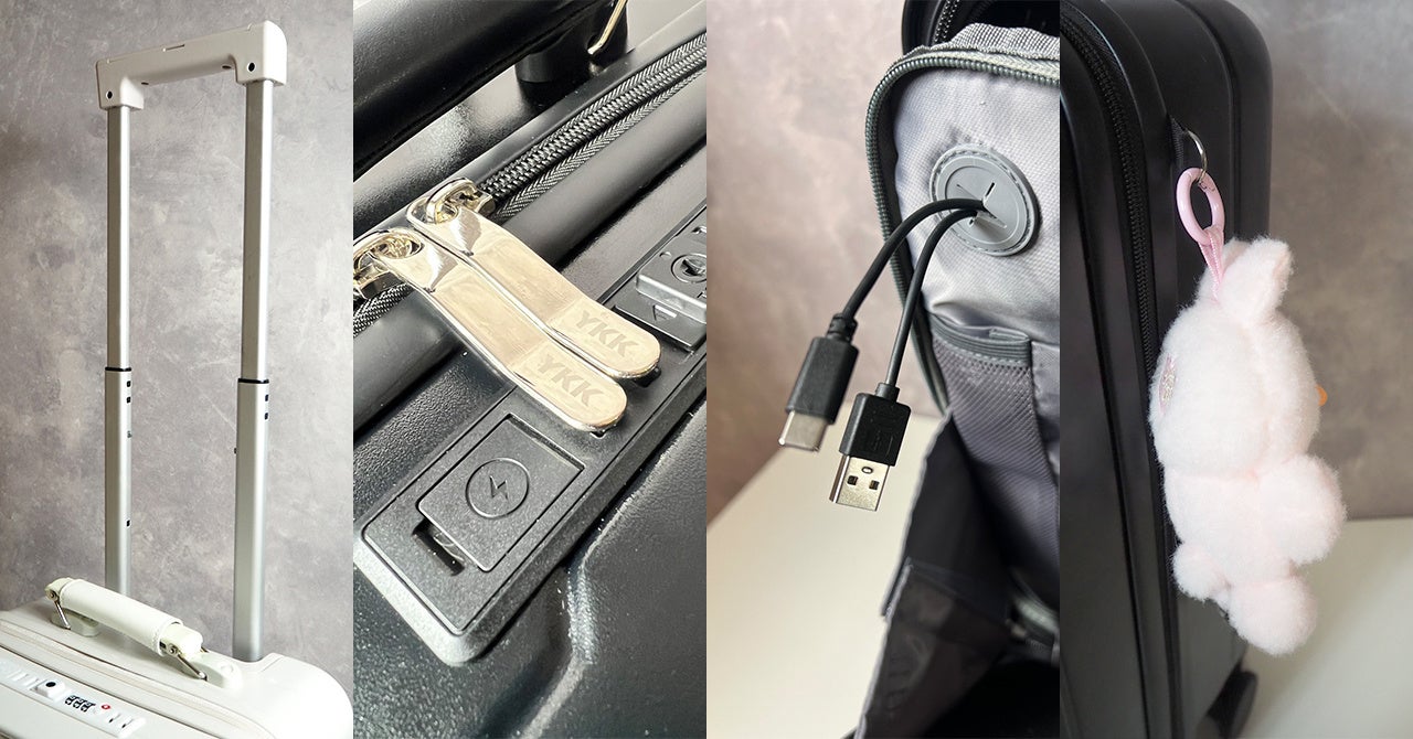 利便性とデザイン性を考慮したクッション付きハンドルを搭載しながら、本体の容量を最大限活かすためにキャスターは取り外し可能にし、機内持ち込みサイズを実現しました。グッズを詰めても1~2泊用の着替えも入れられます。