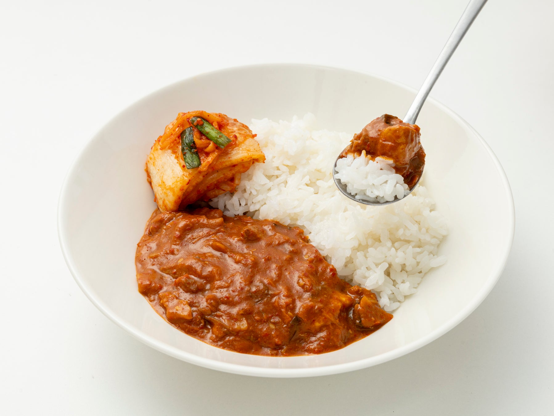 スタミナ満点!豚肉がごろごろ入った発酵キムチカレーは、ごはんにも、