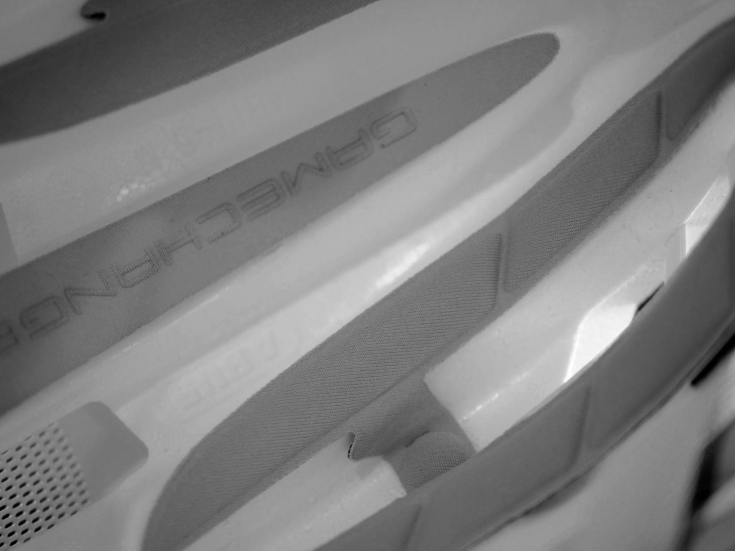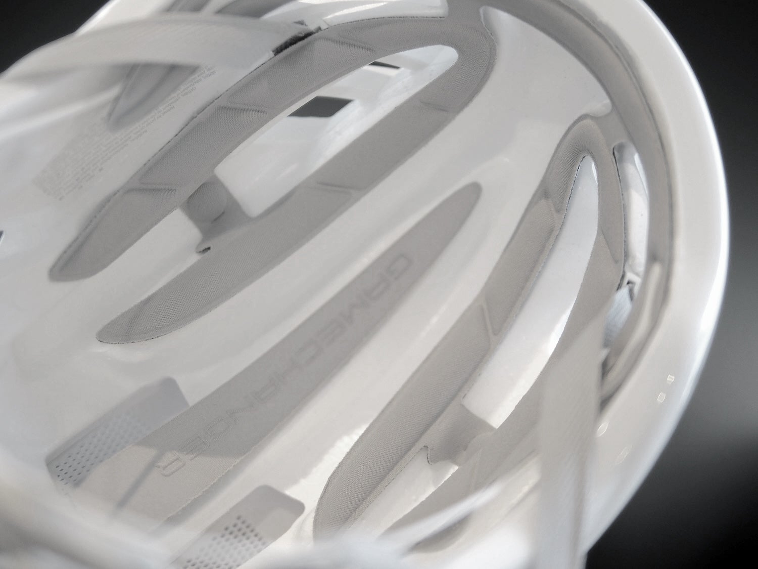 この洗練されたデザインは、イタリアの高い加工技術によるもので、スーツケース製造の現場で培われた特殊な塗装技術をヘルメットに応用。凹凸のある形状にも美しく白をのせることに成功しました。