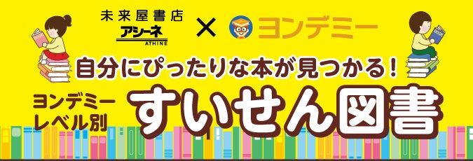 株式会社未来屋書店(本社:千葉市美浜区、代表取締役社長:平川 雅隆)と、子ども向けオンライン読書習い事サービスを運営する株式会社Yondemy(本社:東京都中央区、代表取締役:笹沼 颯太)は、2025年夏、子どもの読書レベルに合わせておすすめの本を紹介する「ヨンデミーレベル別 未来屋すいせん図書フェア」を、全国の未来屋書店にて初開催いたします。
