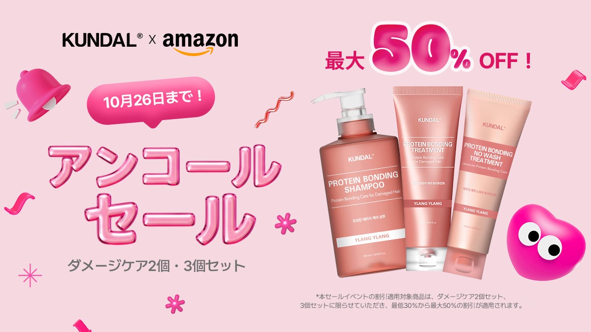 韓国発のプレミアムヘアケアブランド「KUNDAL(クンダル)」は、9月に開催されたAmazon展示会で大きな反響を得た「プロテインダメージケアライン」を、現在開催中のAmazonプライムデー・アンコールセールにて最大50%オフで販売いたします。