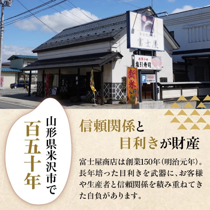 150年以上の歴史を持つ老舗米穀店のお米マイスターが、専門店の目利きと技で厳選した「米沢のおいしいお米で多くの方に幸せになってほしい」と想いを込めた、おいしいお米をお届けします。