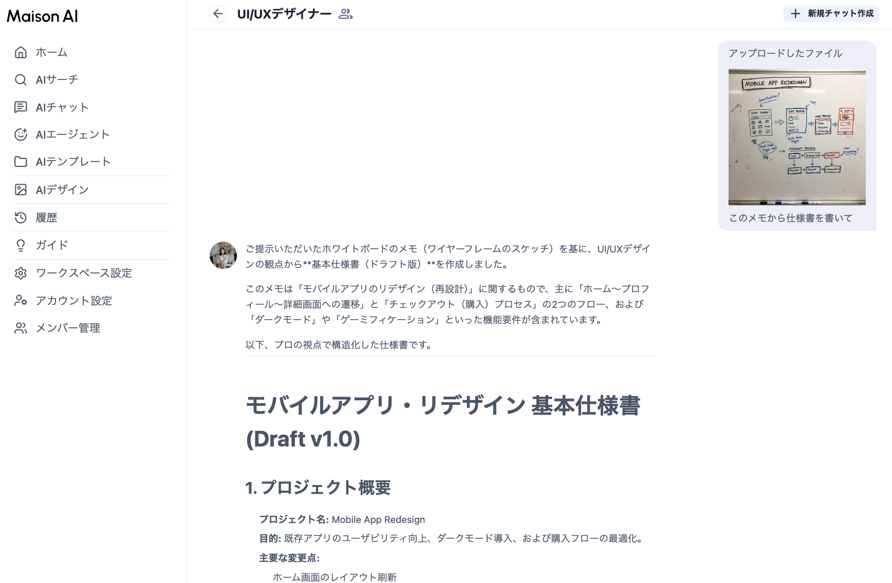 誰でも簡単に扱えるUIと、実務に直結する実践的な機能を備えることで、Maison AIは商品企画やマーケティング、社内資料作成など、日々の業務における創造性と生産性の向上を後押しします。