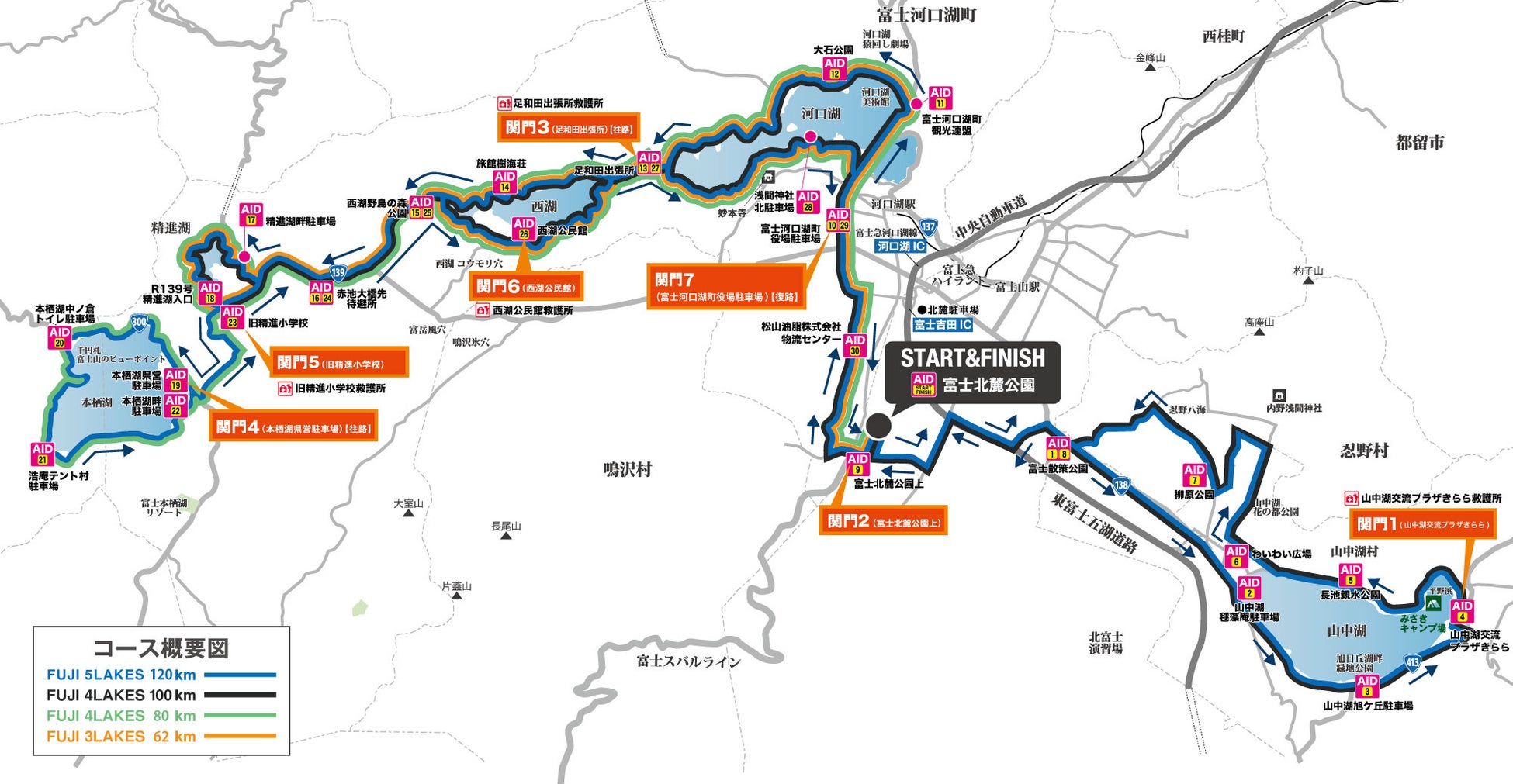 スタート・フィニッシュ地点は富士北麓公園(山梨県富士吉田市)。