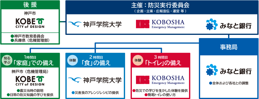 阪神・淡路大震災から30年が経過した現在、震災を知らない世代の割合が大きくなっています。本イベントは親子で防災の重要性や備えの意識を学び、命を守るための知識と行動を次世代へつなぐことを目的としています。産官学金の連携による、防災について改めて考えるきっかけの場の創出、未来の地域防災力の育成につながる新たな取り組みです。