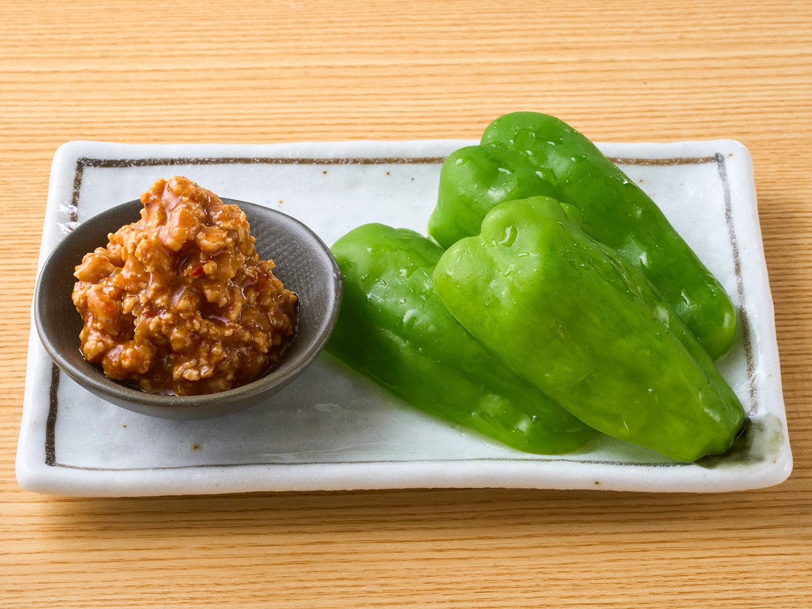 手作りの鶏肉味噌を使った「肉味噌パリパリピーマン」399円(税込439円)
