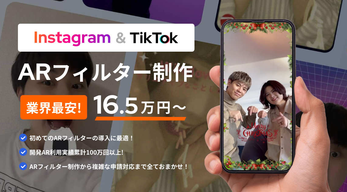 【業界最安値】Instagram・TikTokのARフィルターを16.5万円で制作できるサービスをリリース