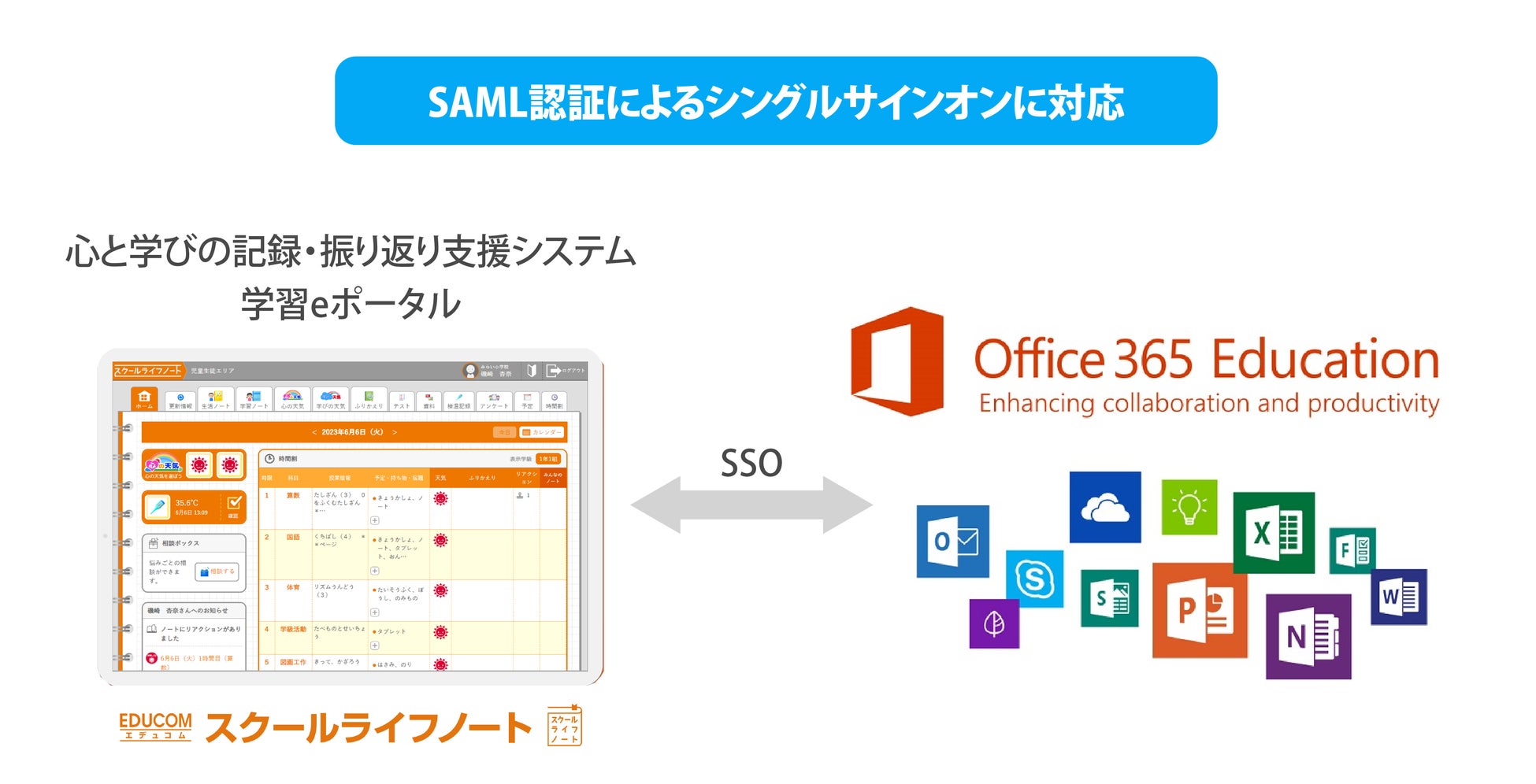 全国の小・中・高等学校に学校支援システムを提供する株式会社EDUCOM(読み:エデュコム、本社:愛知県・東京都、代表取締役CEO兼COO:小林 泰平 、以下EDUCOM)が提供する心と学びの記録・振り返り支援システム「スクールライフノート」が、日本マイクロソフト株式会社が提供する Microsoft Entra ID(旧 Azure Active Directory、以下、Entra ID )とのSAML認証(*1)によるシングルサインオン(以下、SSO)(*2)に対応します。この対応により、 Entra ID に登録したアカウント情報による「スクールライフノート」へのシームレスなログインが可能となります。