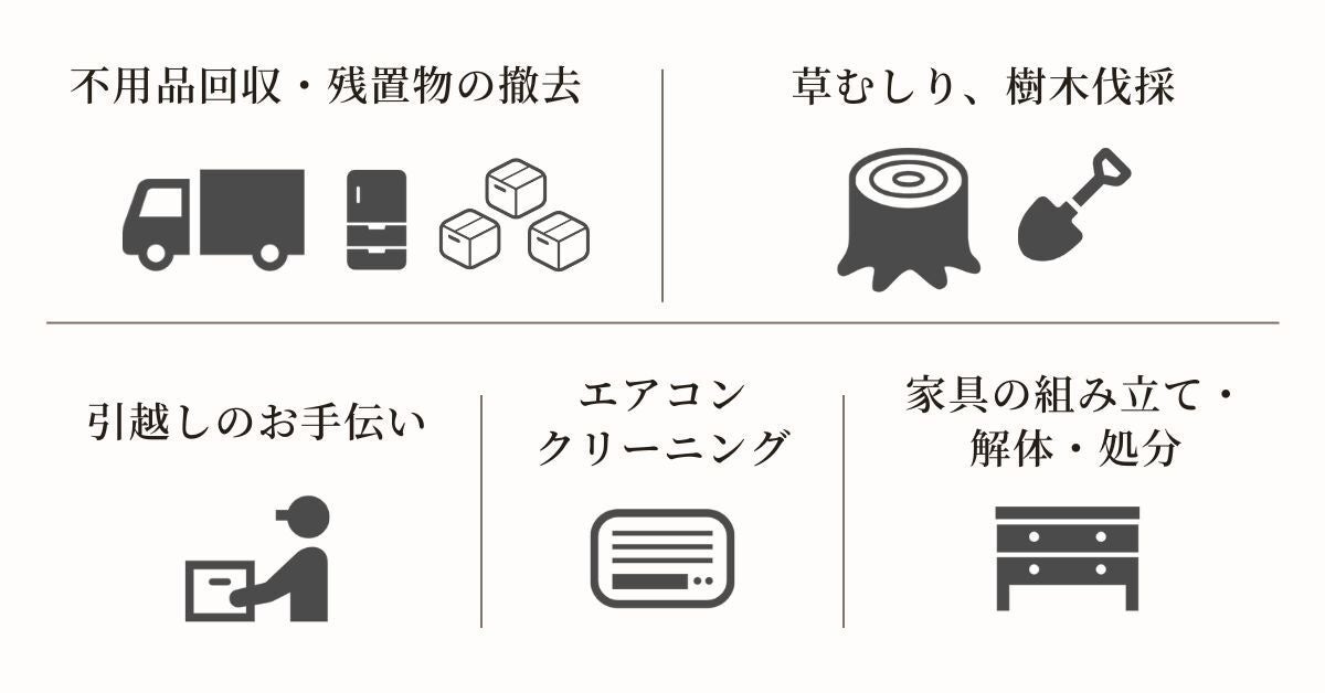 「売却物件の内覧前に不用品を処分したり、庭の手入れをしておきたいが時間がない」