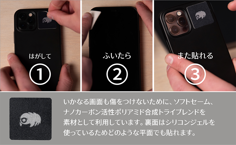 - いかなる画面も傷をつけないために採用された高性能素材、除菌もOK