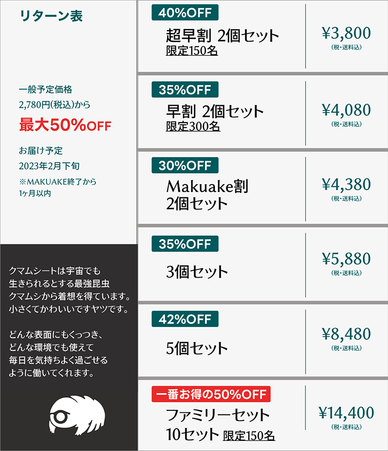 Makuake期間:2022年11月17日(木)~ 2023年1月30日(月)18:00