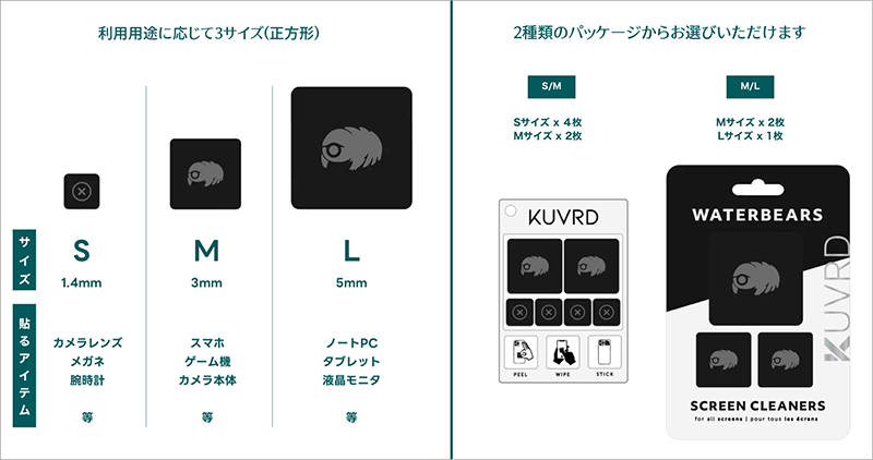 株式会社ハンズエイドは、11月17日より応援購入サービス Makuakeにて、繰り返し使える、画面の汚れや指紋を拭き取る、万能除菌クリーナー「クマムシート」の先行予約販売を開始しました。 本製品はレンズ保護専門メーカーKUVRD(米国)の新製品、米国のクラウドファンディングでわずか2週間の間に10万枚もの支援を集めたヒット商品です。S/MとM/Lの2つのサイズ展開、メーカー希望小売価格(予定)は、税込2,780円。Makuakeでは早期予約割引として定価の最大50%OFFのコースを用意しました。製品は2023年2月に発送予定です。