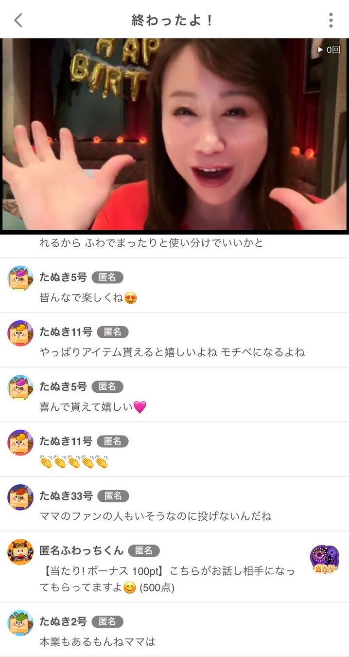 コロナ禍で、漠然と将来の店舗営業の不安を感じており、以前の様に「お客様に来て下さい!」と普通の営業活動に頼る事に限度を感じていました。お店にお客様が来ない空いた時間や、好きな時間にふわっちでの配信をはじめ、視聴者の方に話し相手になってもらい、一緒に楽しく時間を過ごせています。配信がきっかけで30人ほどの視聴者が、今では固定客として来店してくださっており、うち10人くらいが常連客になってくださりました。また、配信がきっかけで出会った配信者にお店のスタッフとして働き始めてもらうなど、スタッフのリクルートにもつながっています。
