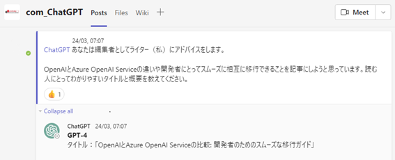 自社で利用しているMicrosoft Teams に Azure OpenAI Service を組み込むことにより、社内ツールに ChatGPT と同様な対話形式での問い合わせアシスタントプログラムを実装しました。
