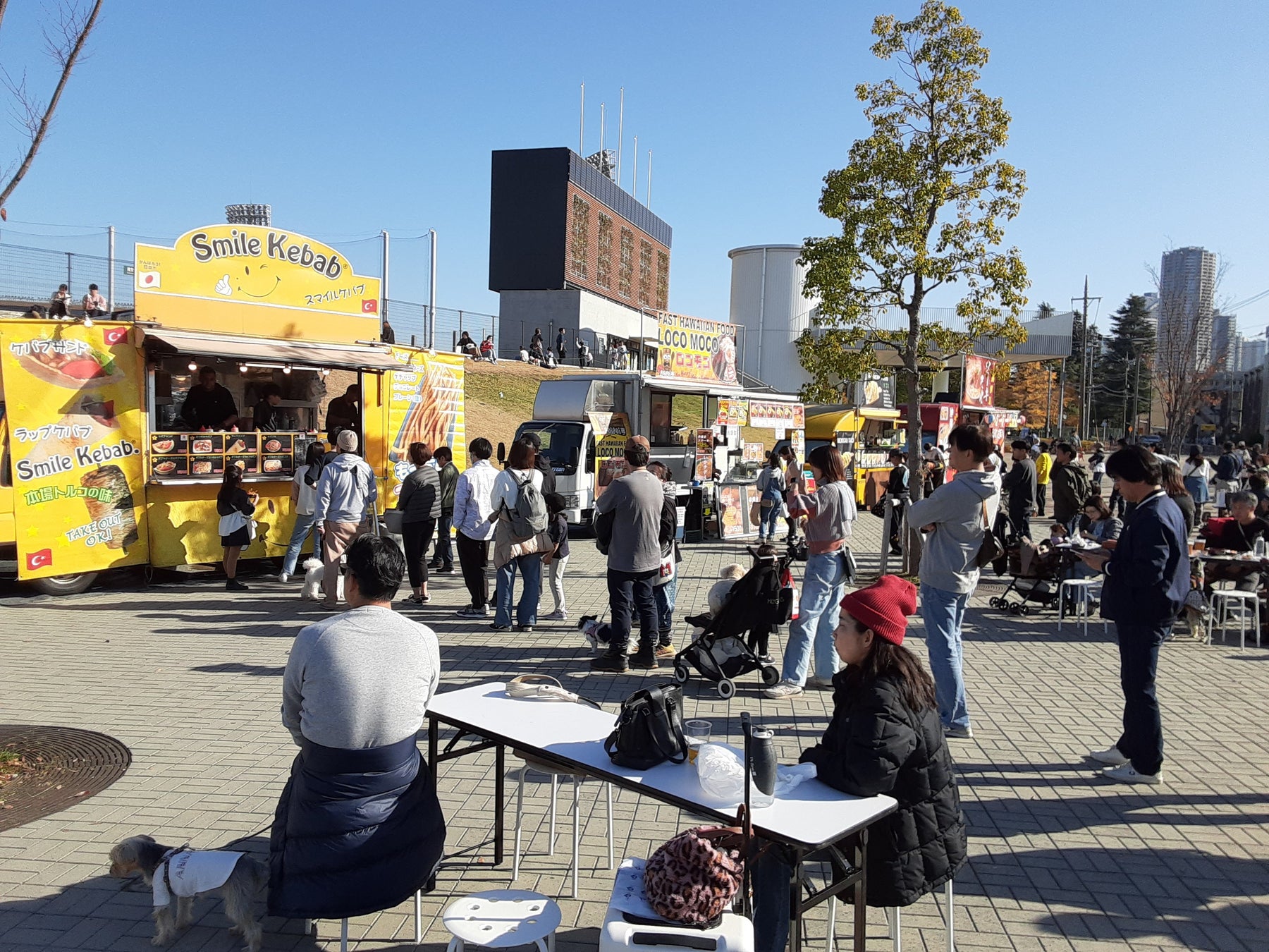 期間限定で多彩なフードトラックグルメが楽しめる飲食エリアがオープン。ワンちゃんと一緒にお食事をお楽しみいただけます。