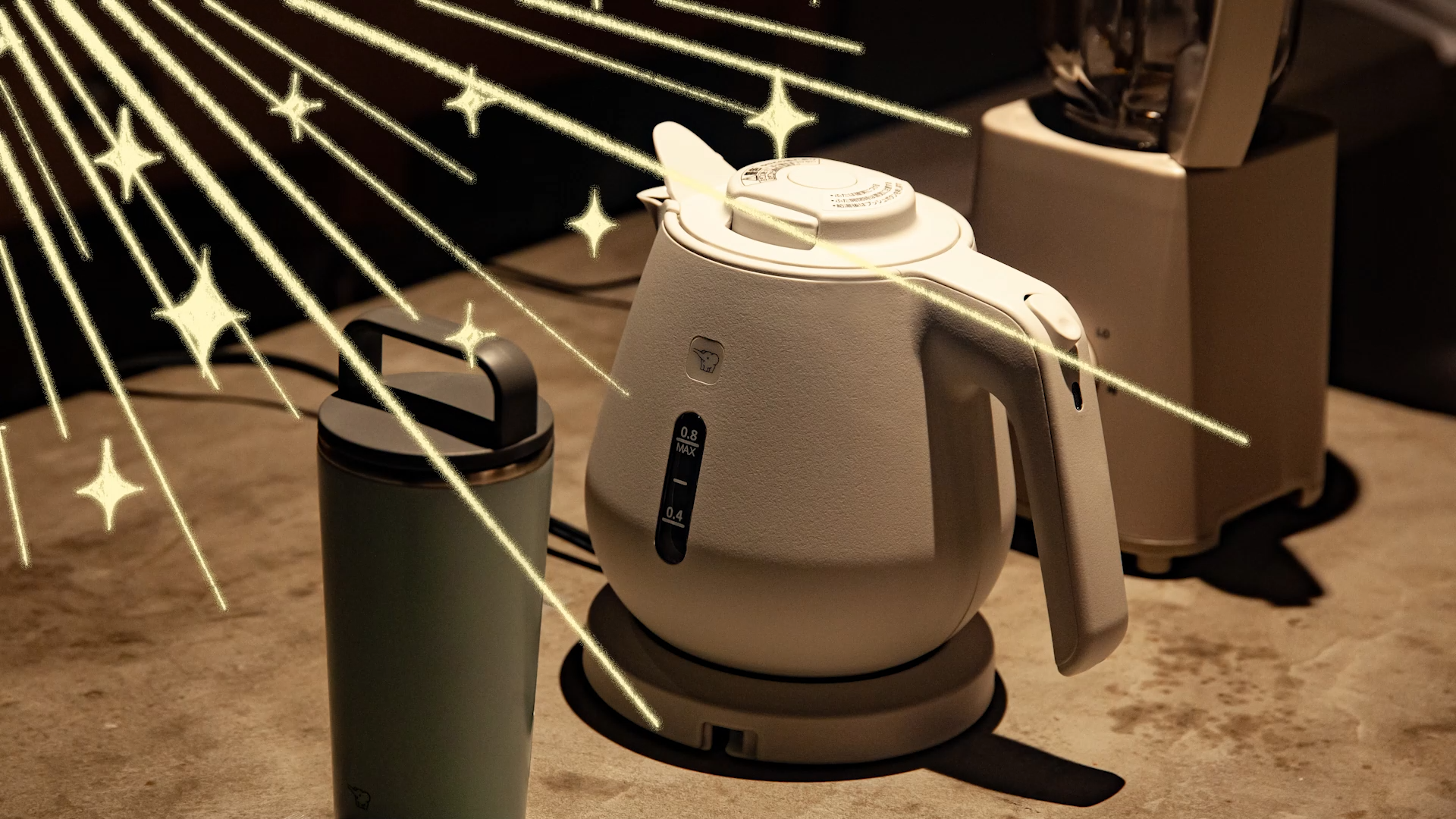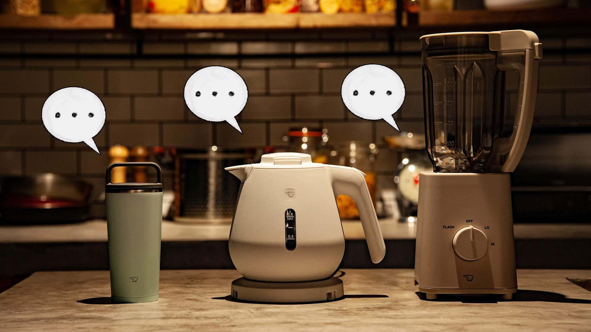 「象のロゴマーク」だけが付いた「象さん印」のキャリータンブラーちゃん、ミキサーさん、ケトルくんが織りなすささやかで平和(?)なスペシャルムービー