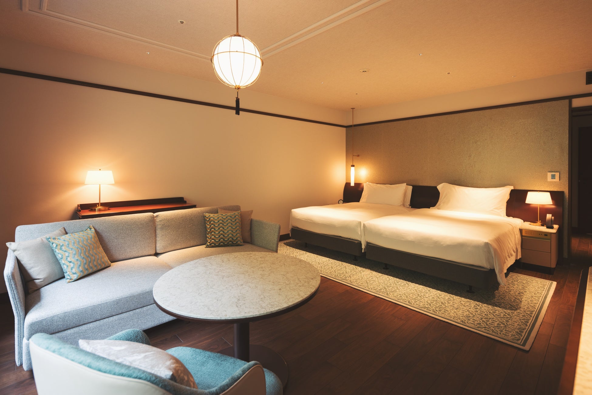 今回のリニューアルを機に新築した愛宕館は、全30室に当ホテル初となる温泉風呂を設え、随所にあしらわれた当ホテルの伝統的なモチーフを楽しみながら癒しのひと時をお過ごしいただけます。