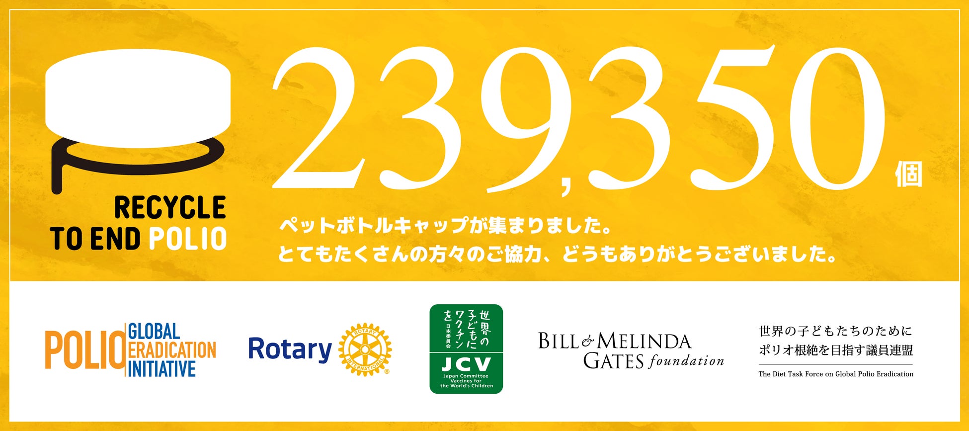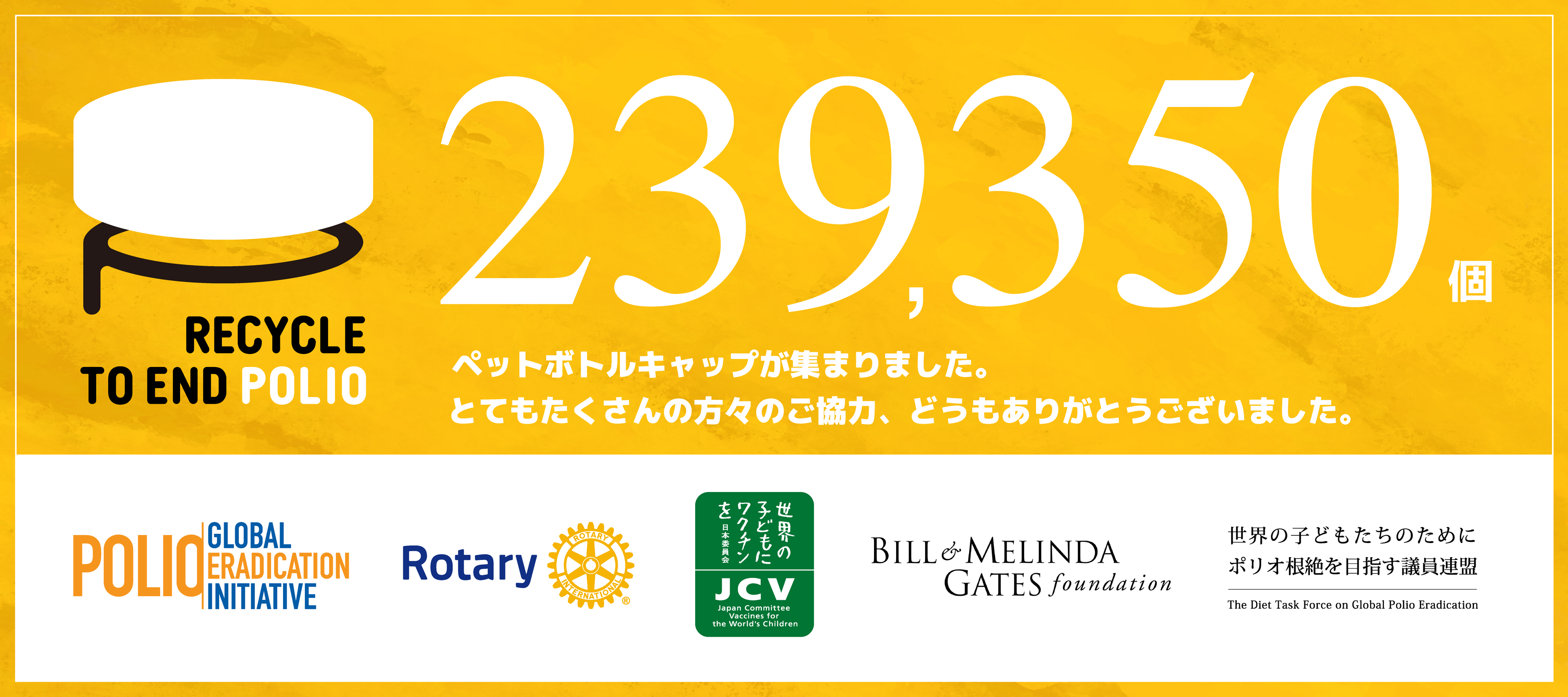 〜 10月24日は「世界ポリオデー」〜 ポリオのない世界を、ペットボトルキャップのリサイクルで目指す「RECYCLE TO END POLIO」からポリオワクチンを提供へ