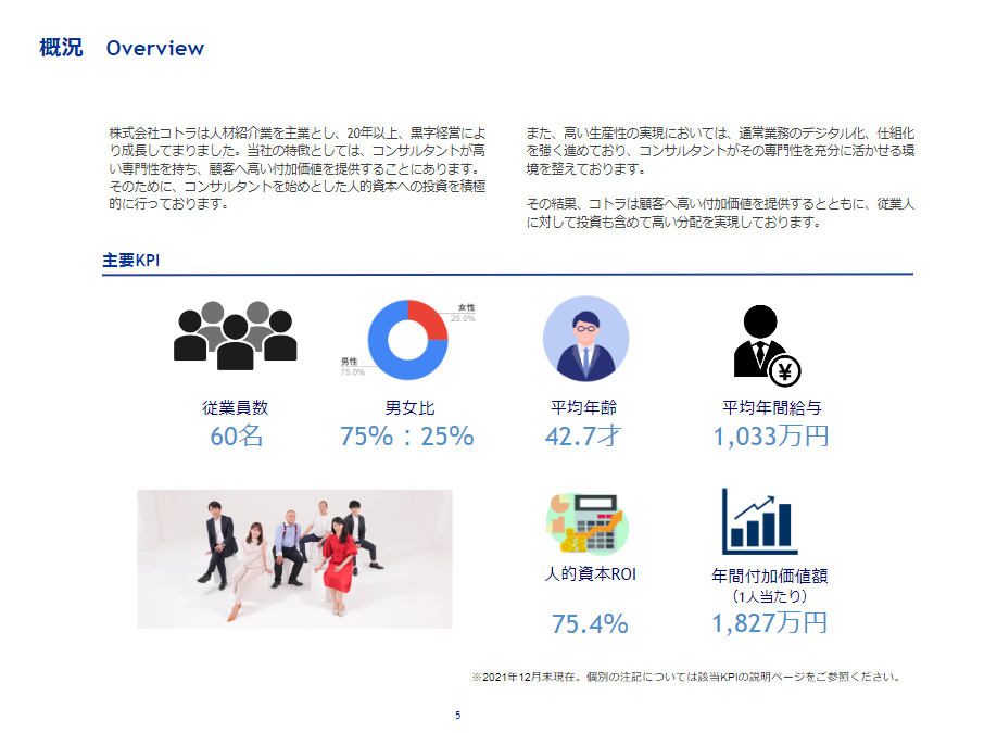 株式会社コトラ(本社 東京都港区、代表取締役 大西利佳子)は、「ISO30414」に準拠した人的資本開示として「People Fact Book 2021」を当社ホームページにて開示しておりますのでご案内いたします。