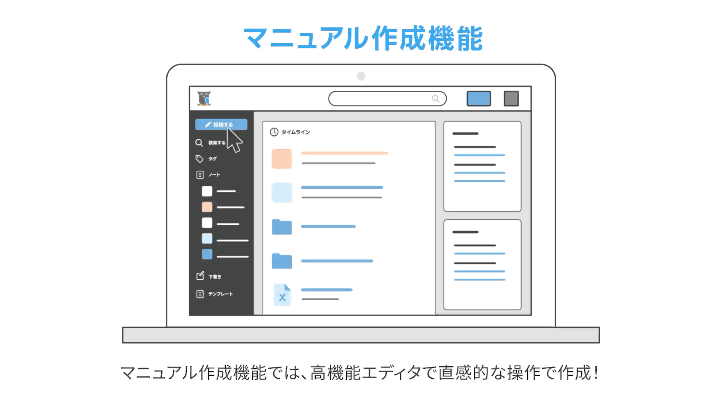 誰でも簡単にわかりやすいマニュアルが作れるため、マニュアル作成の時間を大幅に削減できます。
