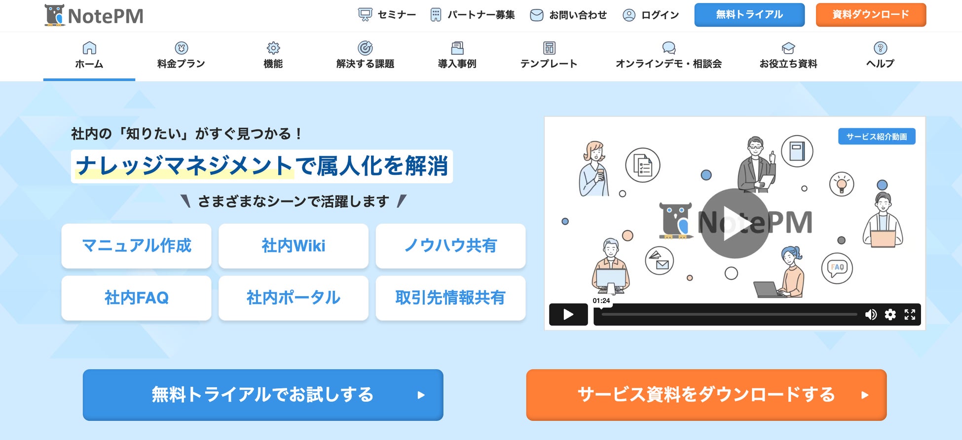 NotePM(ノートピーエム)は、ナレッジやノウハウを一元管理できる「ナレッジマネジメントツール」です。
