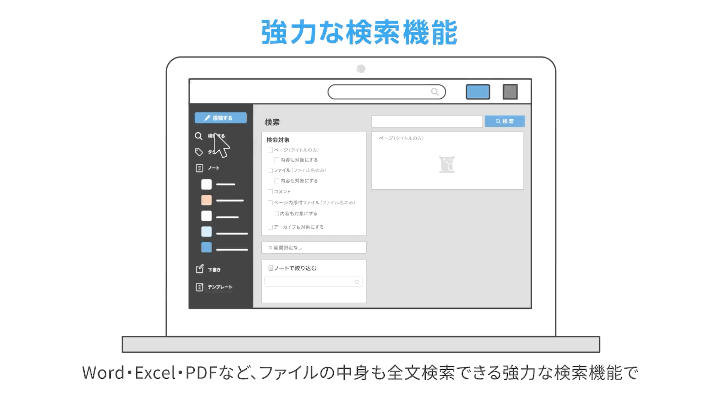 Word・Excel・PowerPoint・PDFなど、ファイルの中身も全文検索。