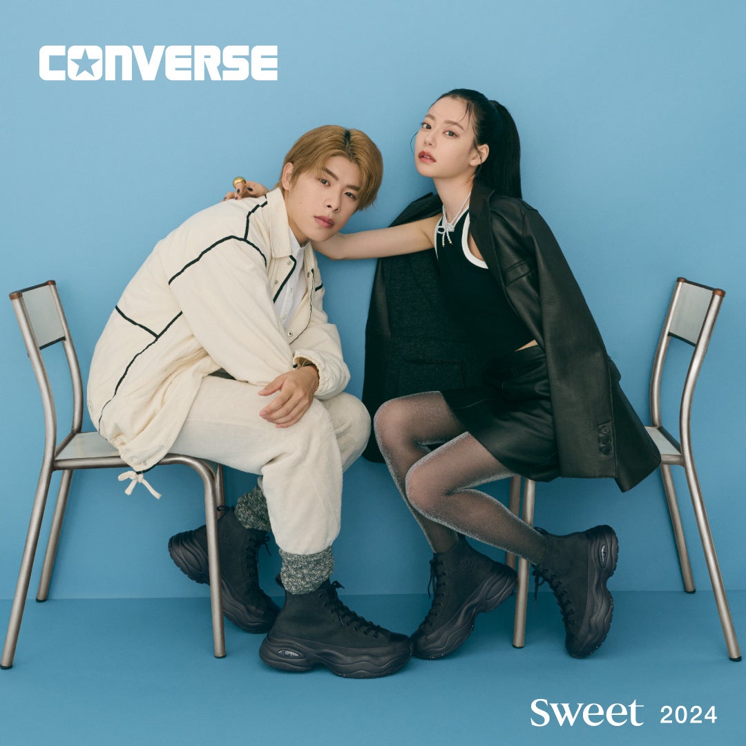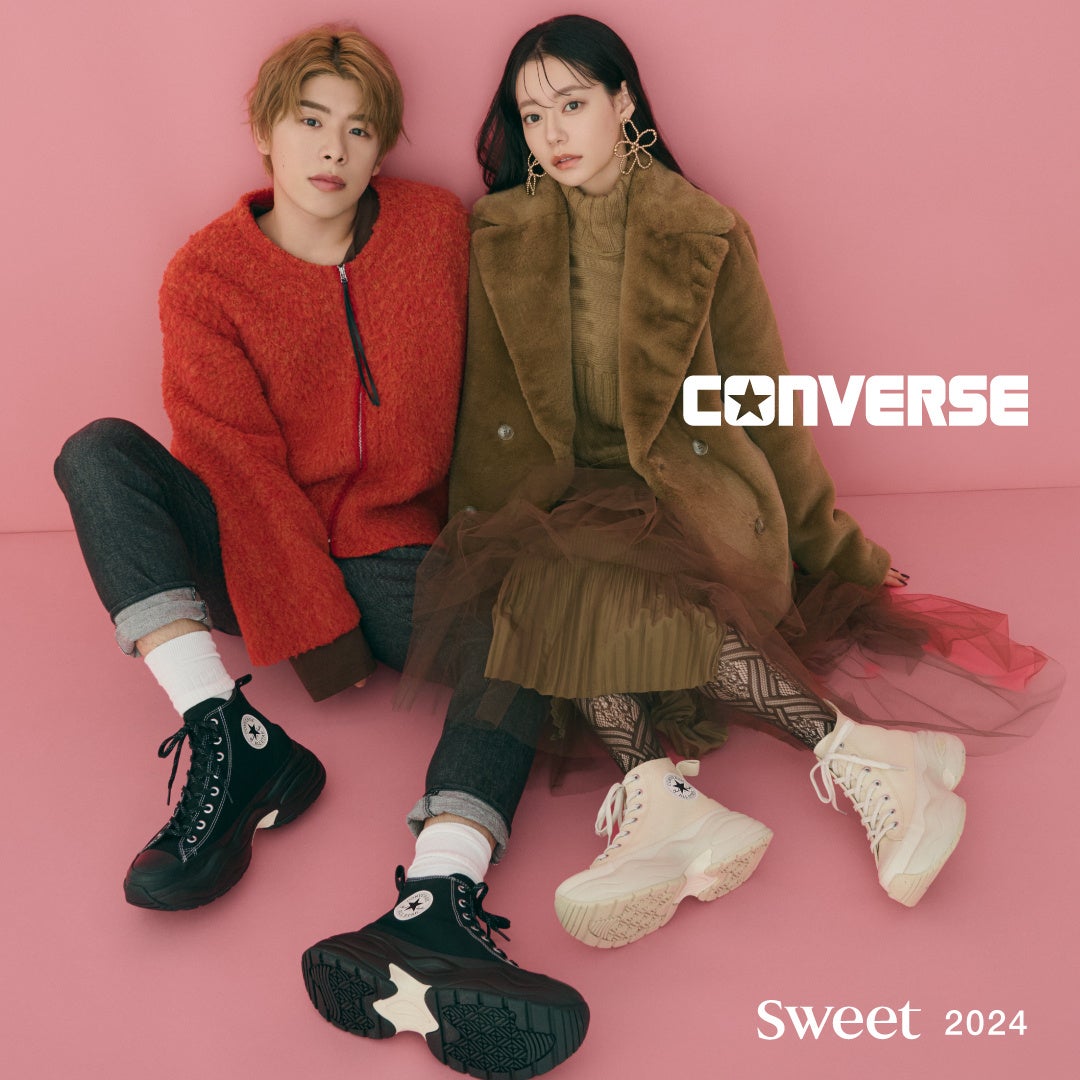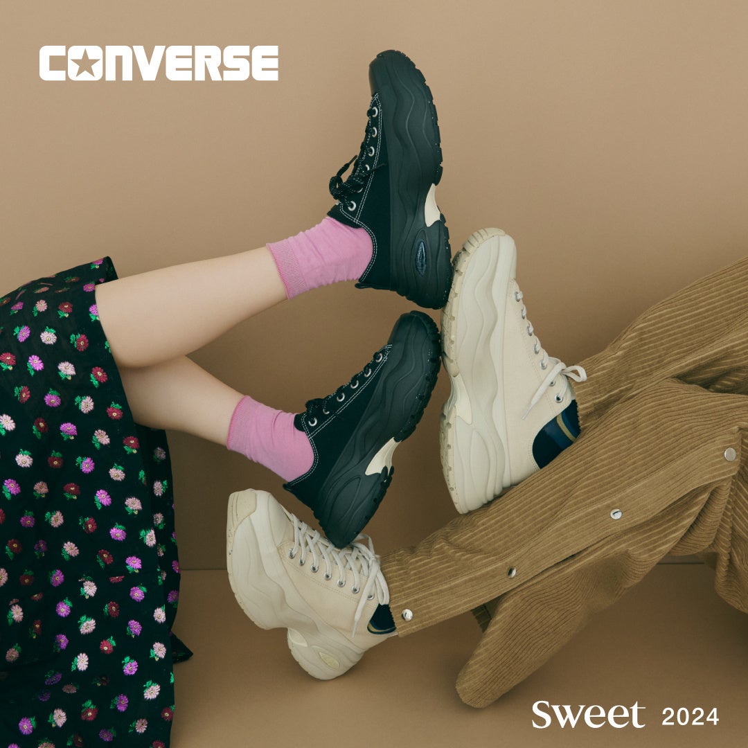 なこなこカップルが彩る、コンバースからレトロスポーティーな厚底モデル〈サージトレーナー〉の新色が登場