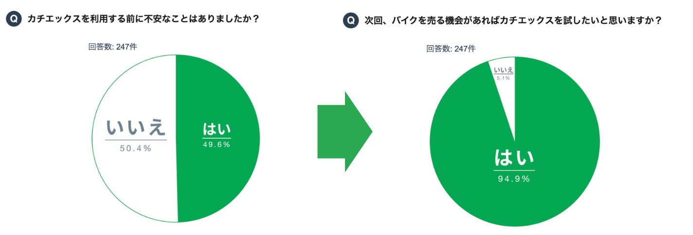 カチエックスをご利用いただく前は、お客様の約半数が不安を抱えていらっしゃいましたが、ご利用後には9割以上のお客様から「再度利用したい」とのお声を頂戴しております。
