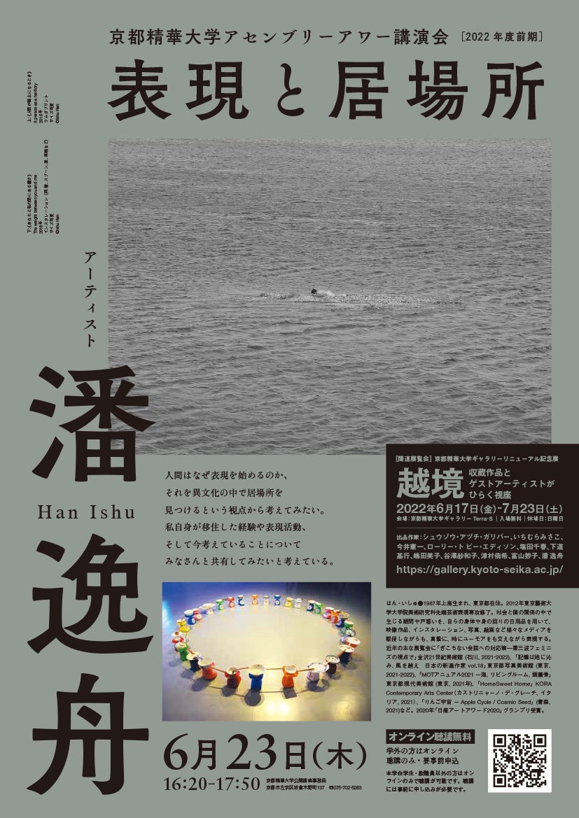 京都精華大学(所在地:京都市左京区、学長:澤田昌人)では、公開トークイベント「アセンブリーアワー講演会」に、アーティストの潘 逸舟氏をお招きし、講演会「表現と居場所」を行います。