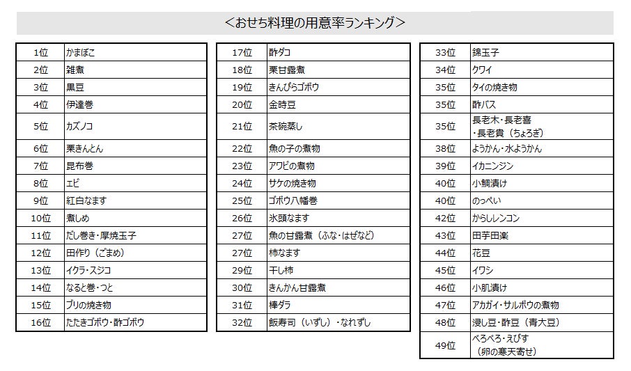<伝統料理を含めたおせち料理49品での調査>