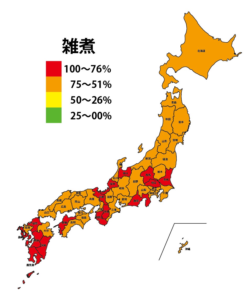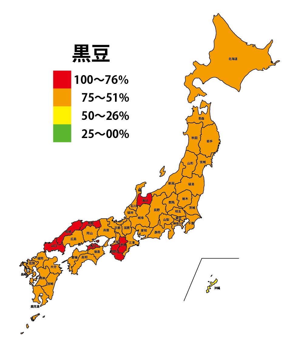 - ほぼ全国的に分布。かまぼこ・雑煮・黒豆の3強は変わらず